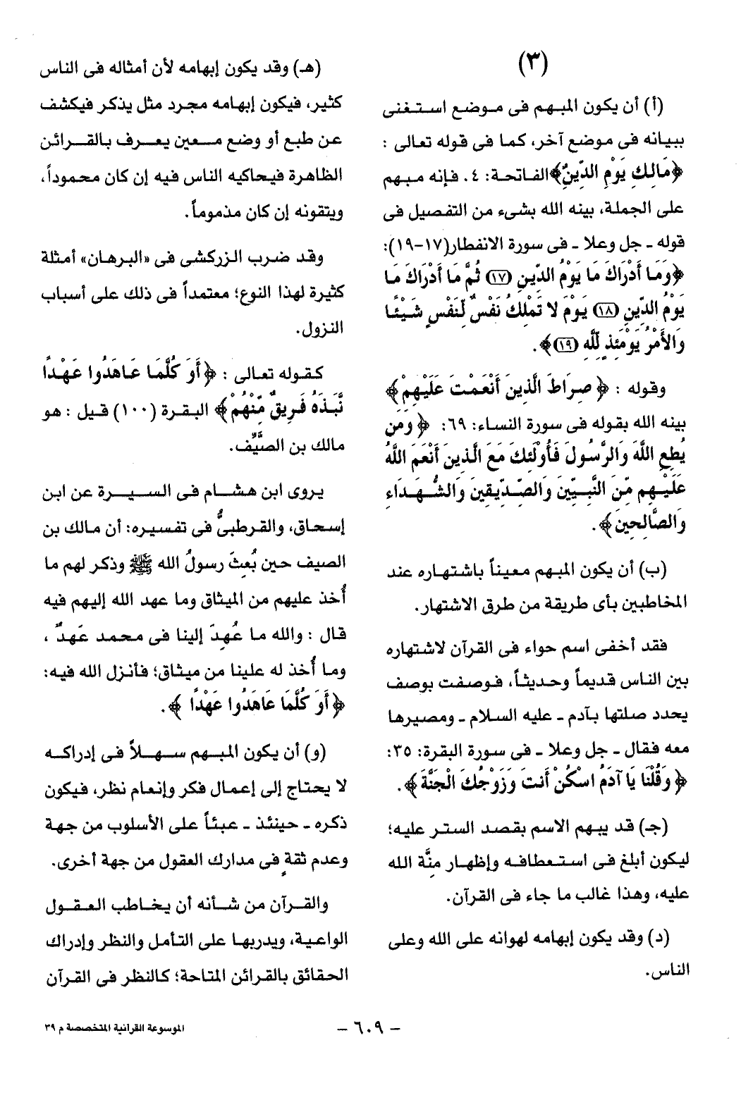(3) (أ) أن يكون المبهم فى موضع استغنى ببيانه فى موضع آخر، كما فى قوله تعالى: