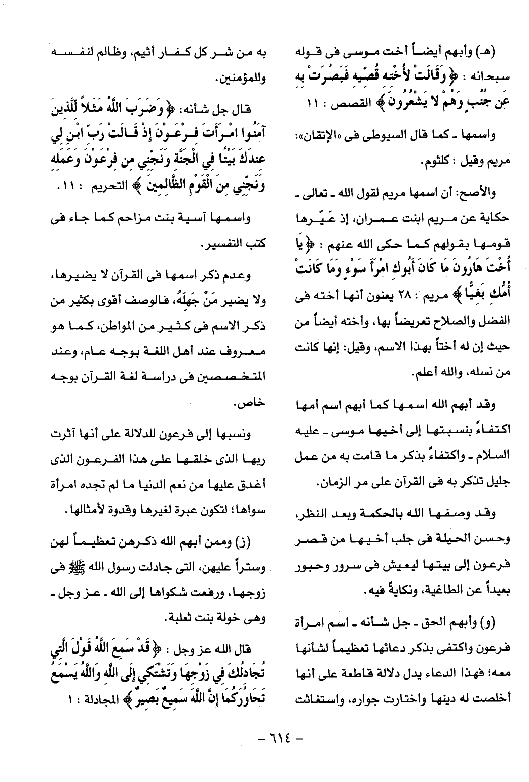(هـ) وأبهم أيضا أخت موسى فى قوله سبحانه: وَقالَتْ لِأُخْتِهِ قُصِّيهِ فَبَصُرَتْ بِهِ عَنْ جُنُبٍ وَهُمْ لا يَشْعُرُونَ القصص: 11
