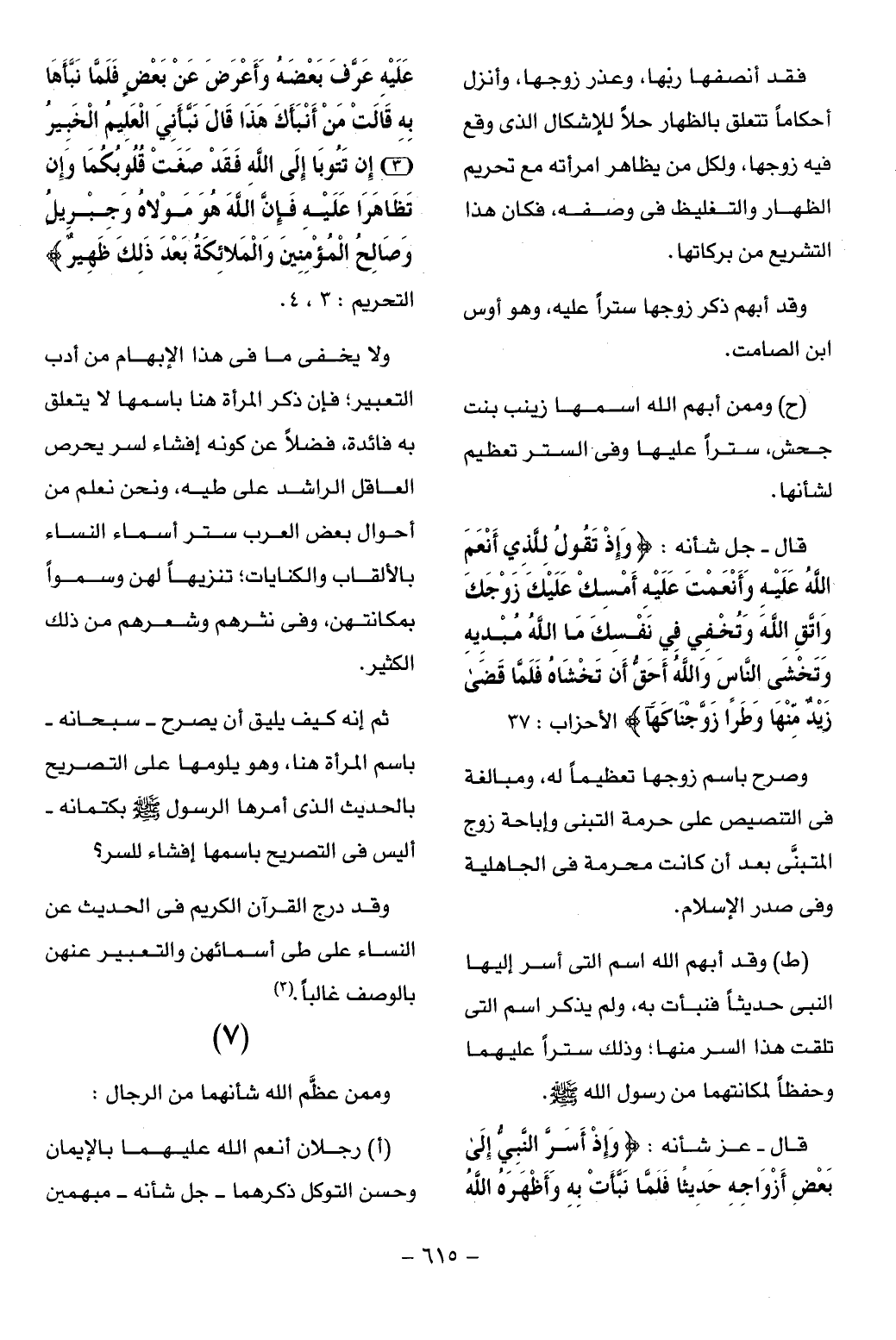 وقد درج القرآن الكريم فى الحديث عن النساء على طى أسمائهن والتعبير عنهن بالوصف غالبا. (¬3)