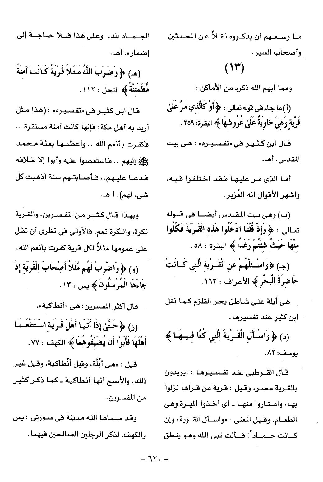(ب) وهى بيت المقدس أيضا فى قوله تعالى: وَإِذْ قُلْنَا ادْخُلُوا هذِهِ الْقَرْيَةَ فَكُلُوا مِنْها حَيْثُ شِئْتُمْ رَغَداً البقرة: 58.