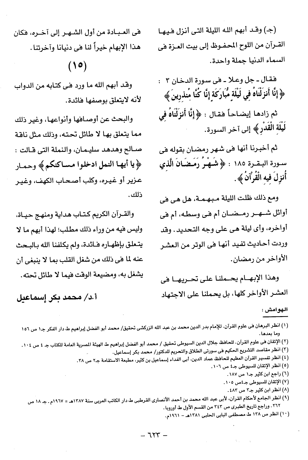 ومع ذلك ظلت الليلة مبهمة، هل هى فى أوائل شهر رمضان أم فى وسطه، أم فى أواخره، وأى ليلة هى على وجه التحديد. وقد وردت أحاديث تفيد أنها فى الوتر من العشر الأواخر من رمضان.