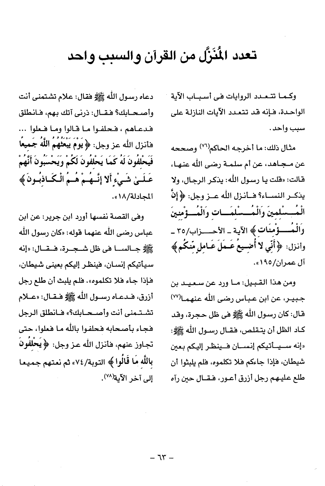 وكما تتعدد الروايات فى أسباب الآية الواحدة، فإنه قد تتعدد الآيات النازلة على سبب واحد.