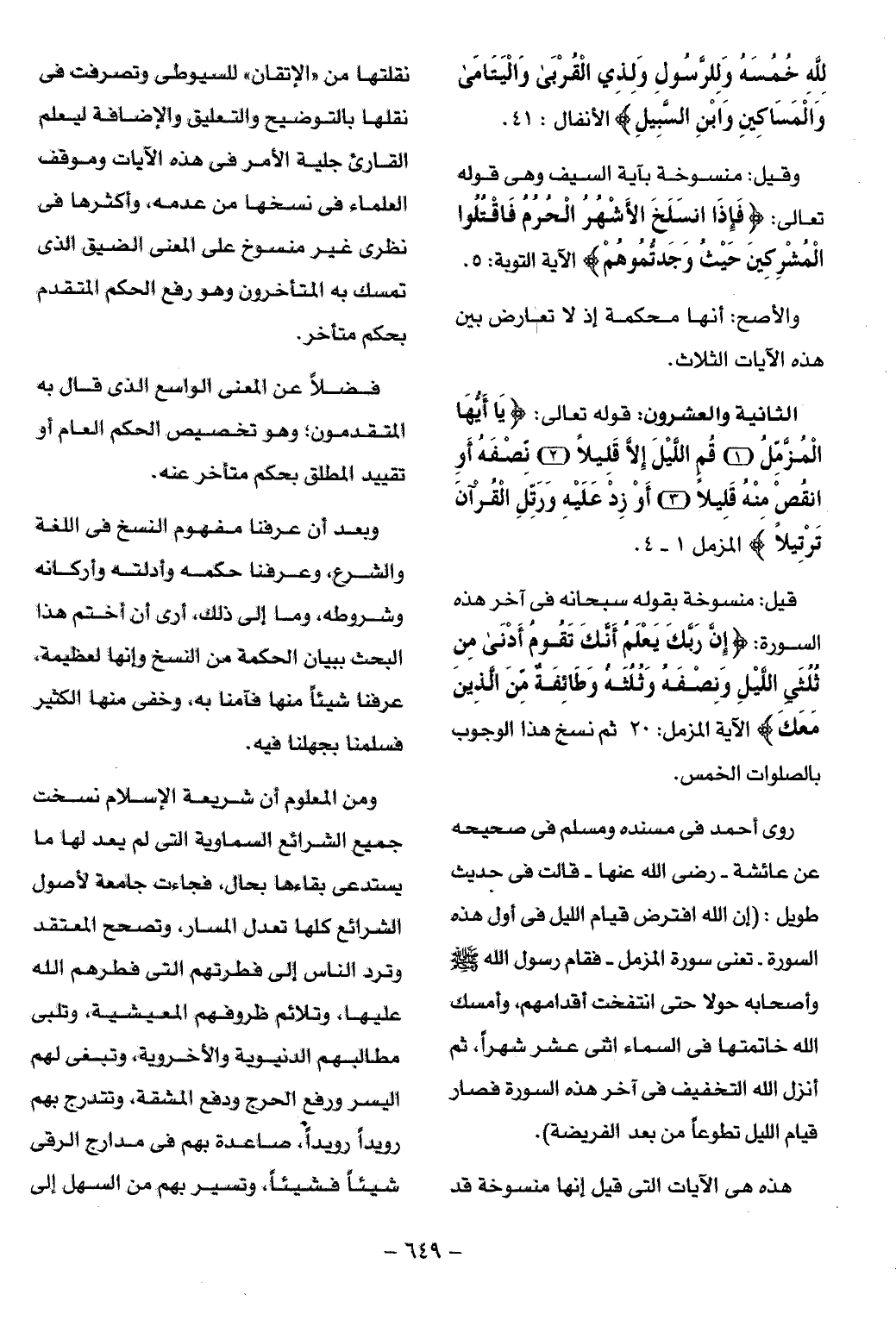 هذه هى الآيات التى قيل إنها منسوخة قد نقلتها من «الإتقان» للسيوطى وتصرفت فى نقلها بالتوضيح والتعليق والإضافة ليعلم القارئ جلية الأمر فى هذه الآيات وموقف العلماء فى نسخها من عدمه، وأكثرها فى نظرى غير منسوخ على المعنى الضيق الذى تمسك به المتأخرون وهو رفع الحكم المتقدم بحكم متأخر.