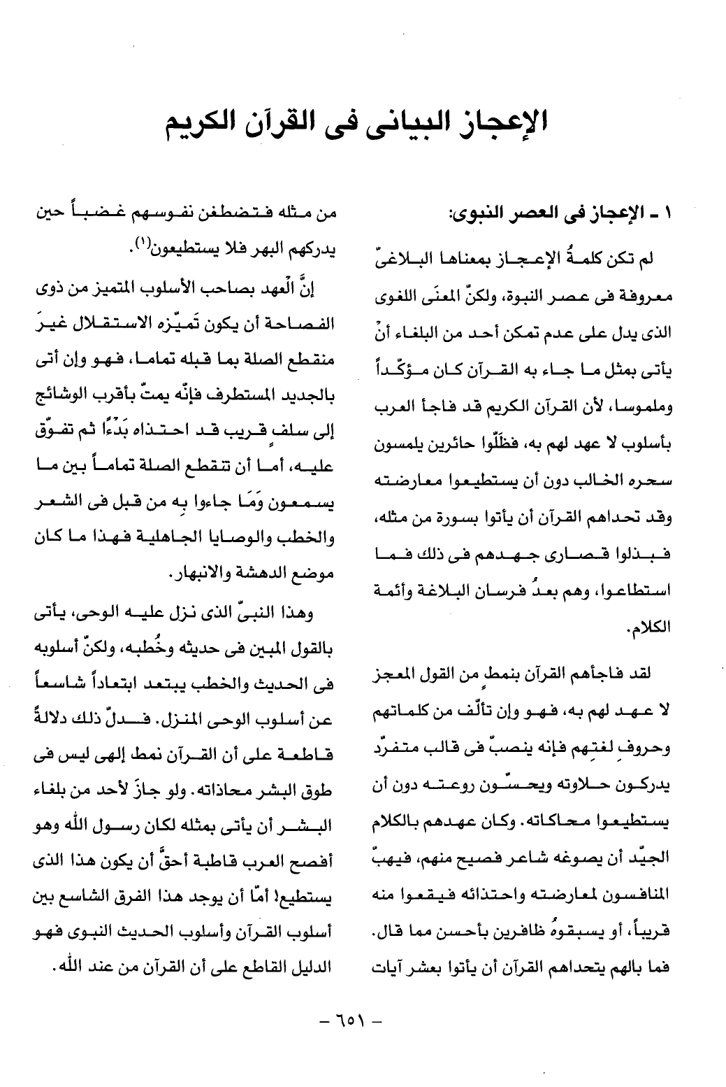 (¬1) البيان القرآنى للدكتور محمد رجب البيومى ص 15 ط الدار المصرية اللبنانية للنشر سنة 2000 م.