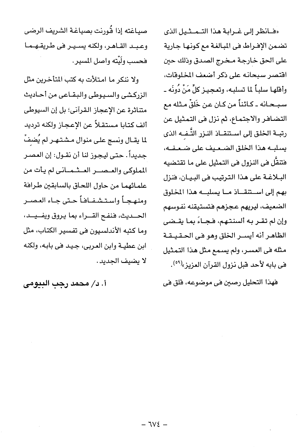 فهذا التحليل رصين فى موضوعه، قلق فى صياغته إذا قورنت بصياغة الشريف الرضى وعبد القاهر، ولكنه يسير فى طريقهما فحسب وليته واصل المسير.