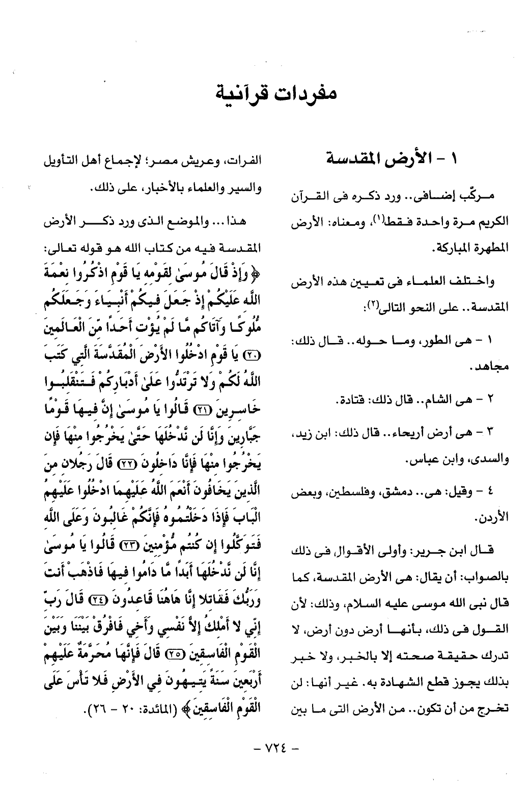 هذا ... والموضع الذى ورد ذكر الأرض المقدسة فيه من كتاب الله هو قوله تعالى: