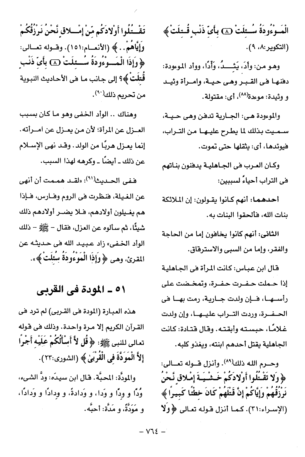 وَإِذَا الْمَوْؤُدَةُ سُئِلَتْ (8) بِأَيِّ ذَنْبٍ قُتِلَتْ؟ إلى جانب ما فى الأحاديث النبوية من تحريم ذلك (¬90).
