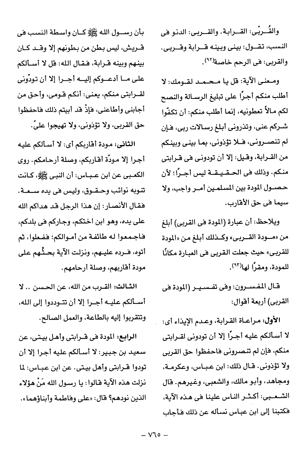 (¬93) انظر: ابن كثير: تفسير القرآن العظيم، النيسابورى: غرائب القرآن (الشورى تفسير الآية 23) الفيروزآبادى: بصائر ذوى التمييز 4/ 253.