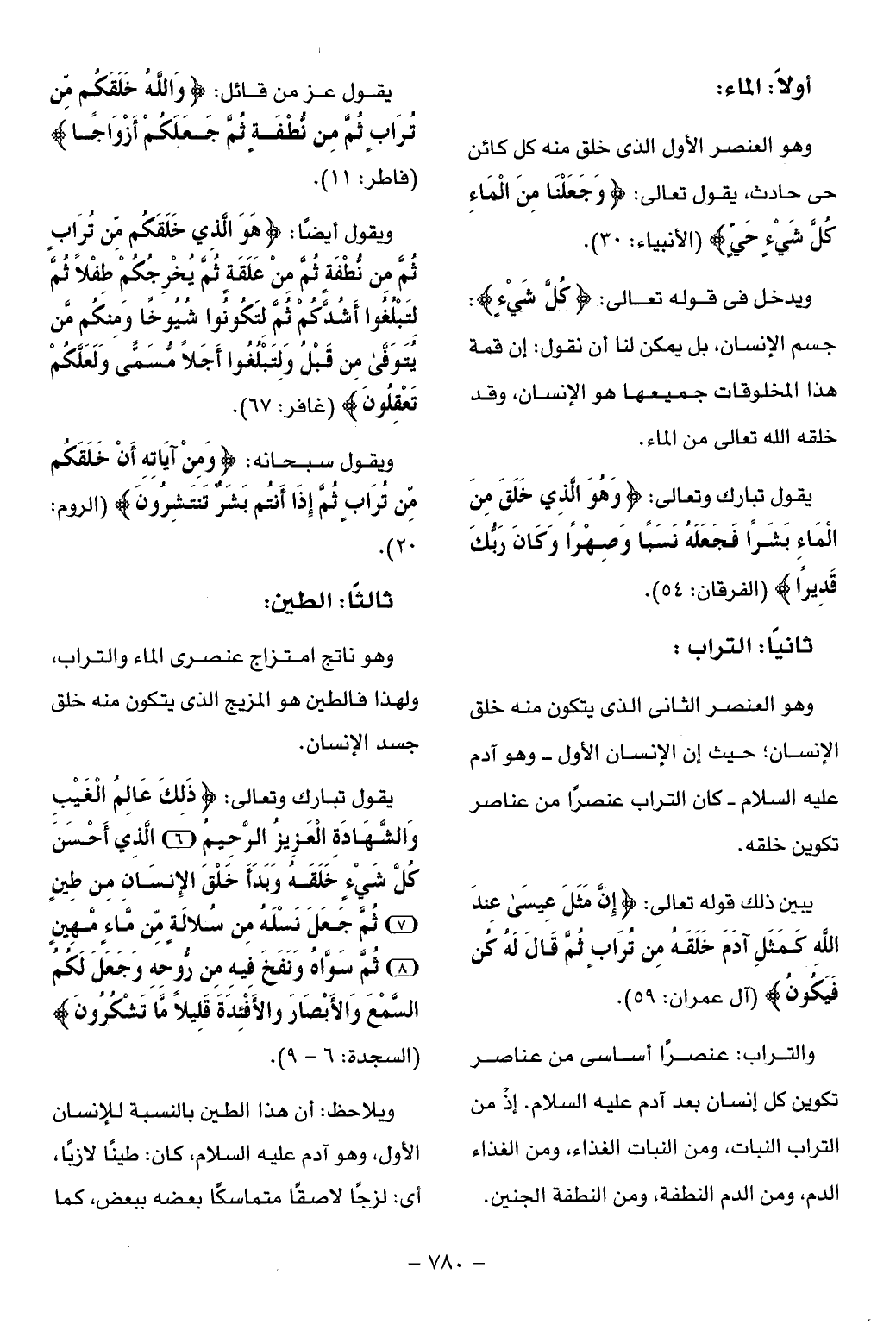وهو العنصر الأول الذى خلق منه كل كائن حى حادث، يقول تعالى: وَجَعَلْنا مِنَ الْماءِ كُلَّ شَيْءٍ حَيٍّ (الأنبياء: 30).