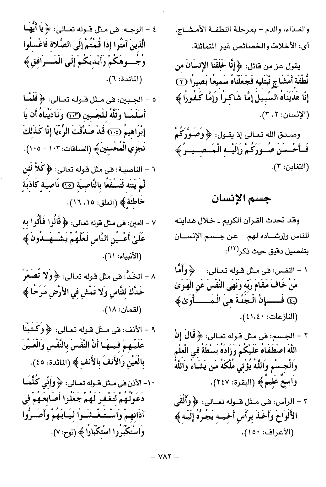 وقد تحدث القرآن الكريم- خلال هدايته للناس وإرشاده لهم- عن جسم الإنسان بتفصيل دقيق حيث ذكر (¬13):