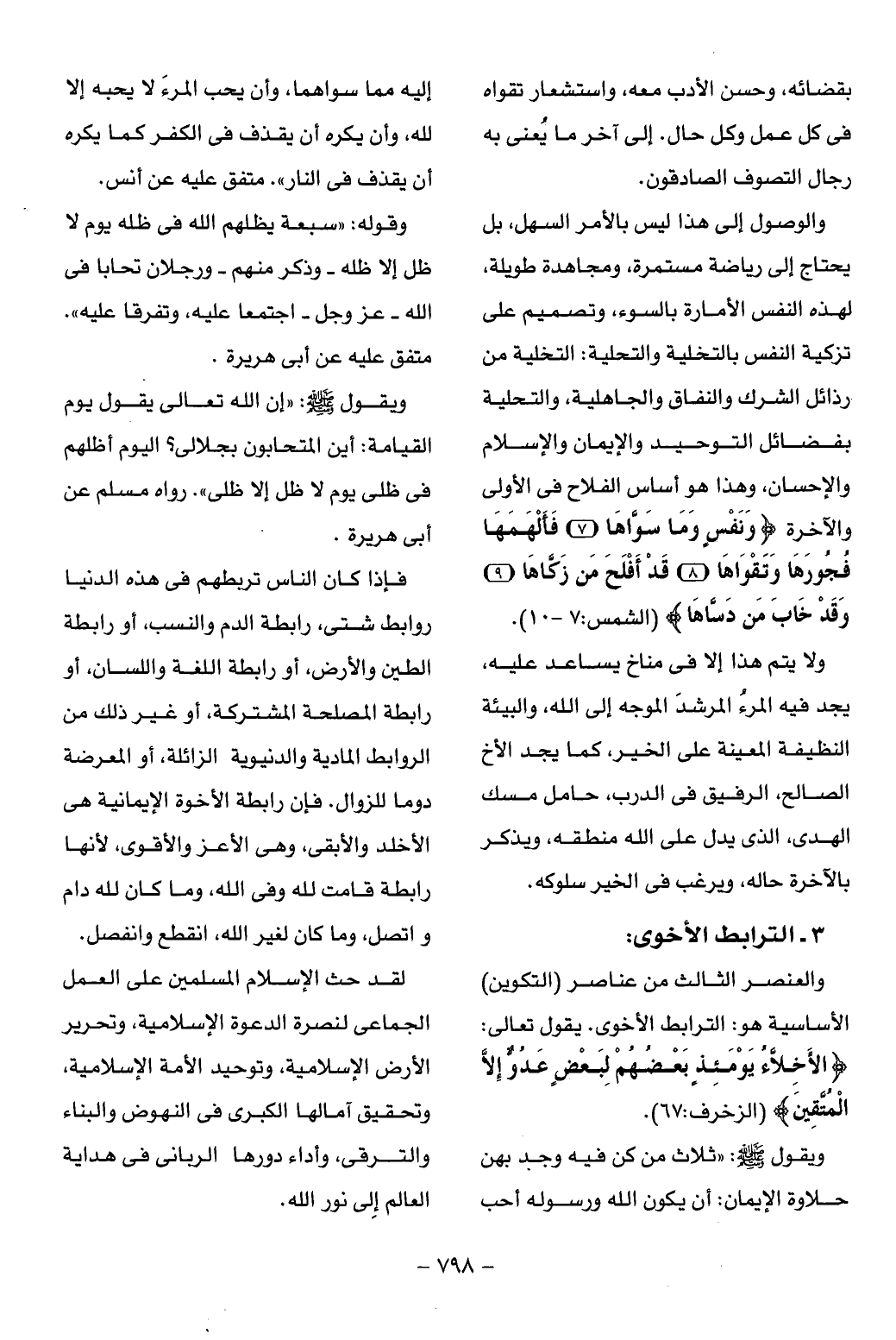 والعنصر الثالث من عناصر (التكوين) الأساسية هو: الترابط الأخوى. يقول تعالى:
