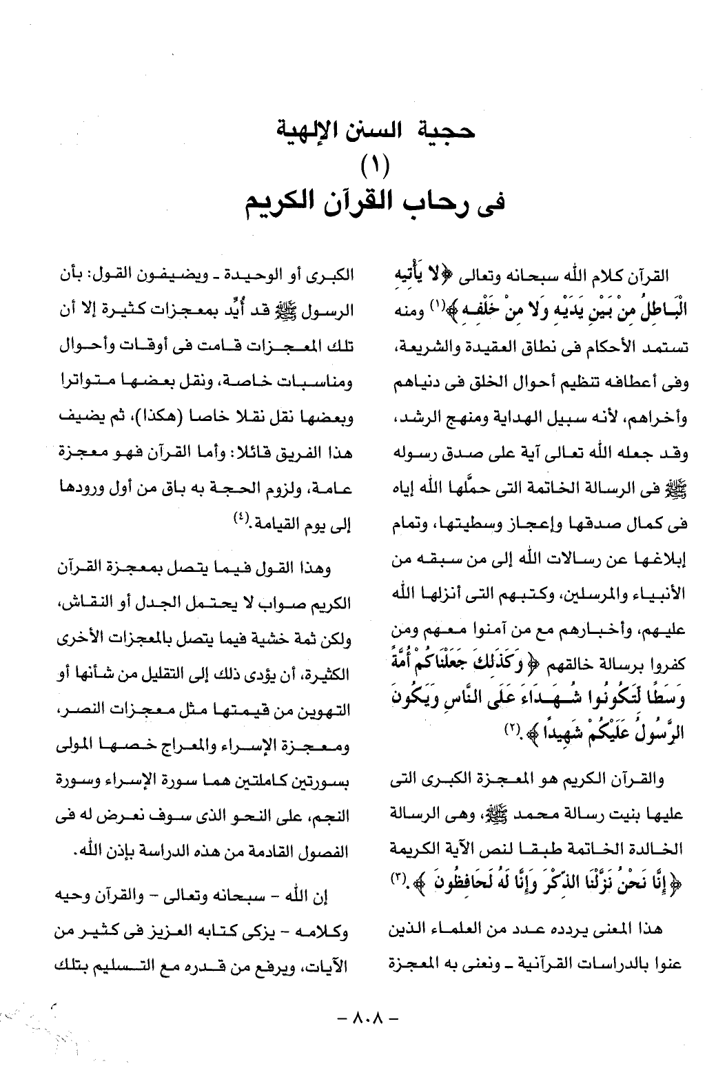 والقرآن الكريم هو المعجزة الكبرى التى عليها بنيت رسالة محمد صلّى الله عليه وسلّم، وهى الرسالة الخالدة الخاتمة طبقا لنص الآية الكريمة إِنَّا نَحْنُ نَزَّلْنَا الذِّكْرَ وَإِنَّا لَهُ لَحافِظُونَ. (¬3)