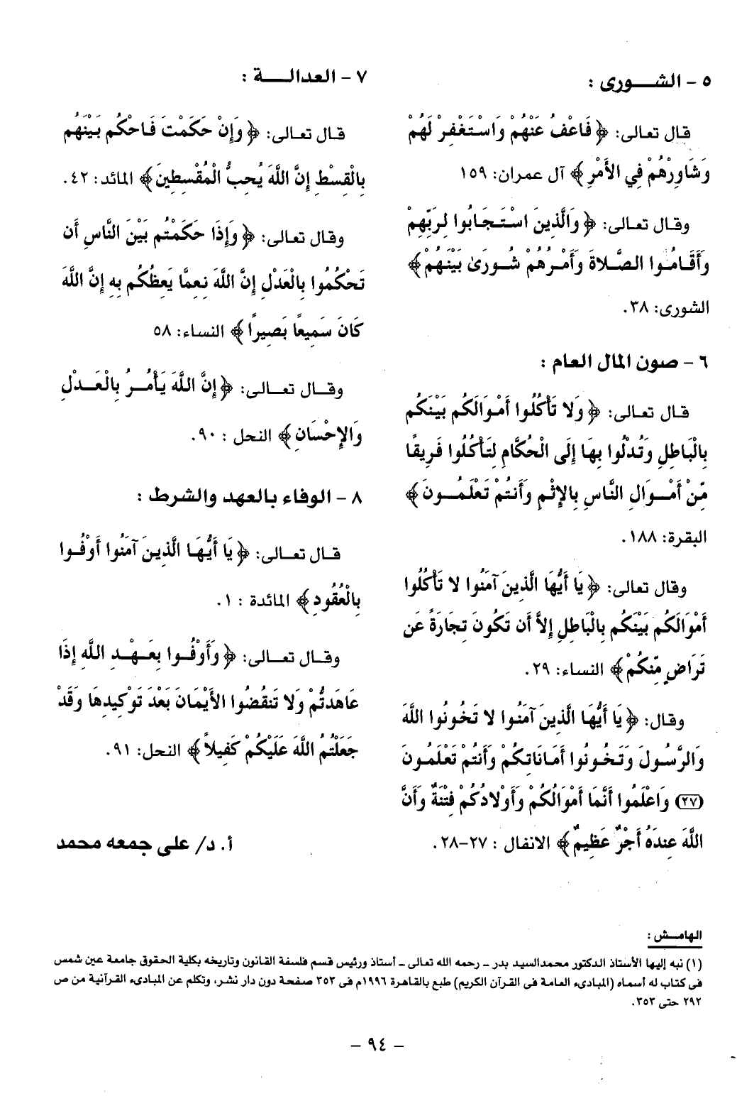8 - الوفاء بالعهد والشرط: