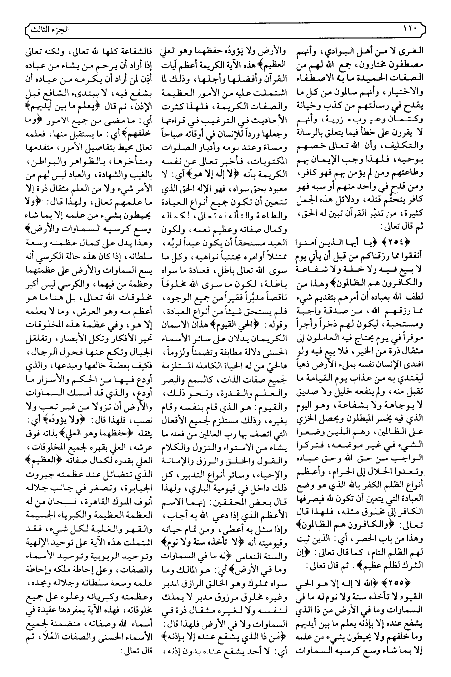 {٢٥٥} {اللَّهُ لا إِلَهَ إِلا هُوَ الْحَيُّ الْقَيُّومُ لا تَأْخُذُهُ سِنَةٌ وَلا نَوْمٌ لَهُ مَا فِي السَّمَاوَاتِ وَمَا فِي الأرْضِ مَنْ ذَا الَّذِي يَشْفَعُ عِنْدَهُ إِلا بِإِذْنِهِ يَعْلَمُ مَا بَيْنَ أَيْدِيهِمْ وَمَا خَلْفَهُمْ وَلا يُحِيطُونَ بِشَيْءٍ مِنْ عِلْمِهِ إِلا بِمَا شَاءَ وَسِعَ كُرْسِيُّهُ السَّمَاوَاتِ وَالأرْضَ وَلا يَئُودُهُ حِفْظُهُمَا وَهُوَ الْعَلِيُّ الْعَظِيمُ} .