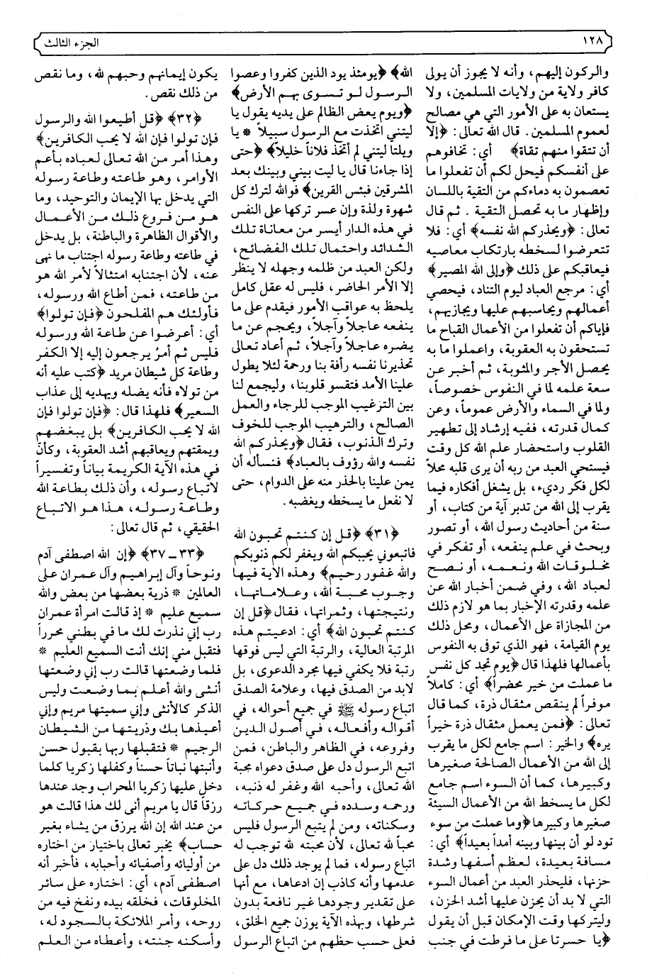 {٣٢} {قُلْ أَطِيعُوا اللَّهَ وَالرَّسُولَ فَإِنْ تَوَلَّوْا فَإِنَّ اللَّهَ لا يُحِبُّ الْكَافِرِينَ} .
