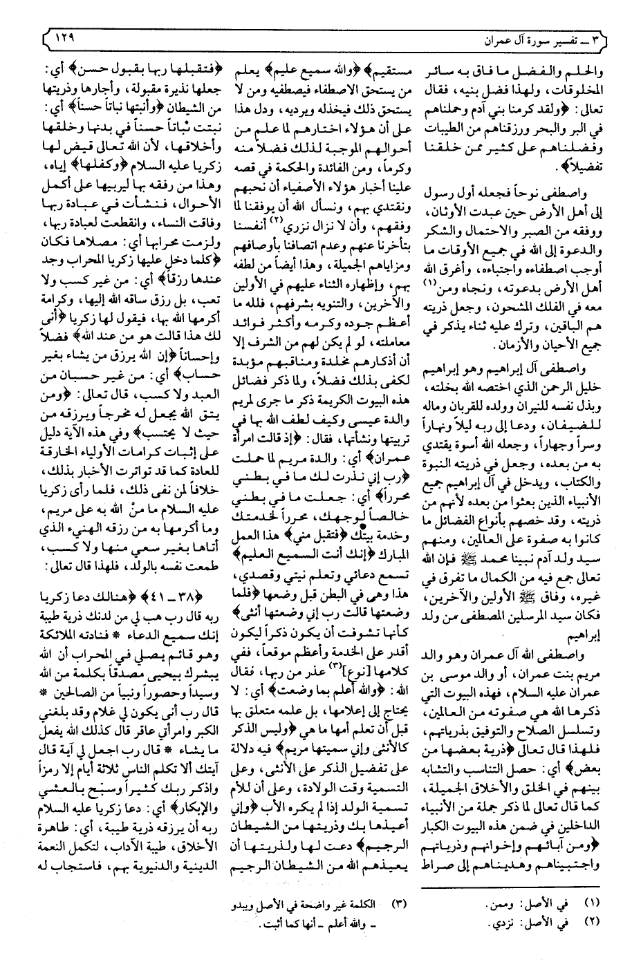 وبينما هو قائم في محرابه يتعبد لربه ويتضرع نادته الملائكة {أن الله يبشرك بيحيى مصدقًا بكلمة من الله} أي: بعيسى عليه السلام، لأنه كان بكلمة الله {وسيدًا} أي: يحصل له من الصفات الجميلة ما يكون به سيدا يرجع إليه في الأمور {وحصورًا} أي: ممنوعا من إتيان النساء، فليس في قلبه لهن شهوة، اشتغالا بخدمة ربه وطاعته {ونبيًا من الصالحين} فأي: بشارة أعظم من هذا الولد الذي حصلت البشارة بوجوده، وبكمال صفاته، وبكونه نبيا من الصالحين، فقال زكريا من شدة فرحه {رب أنى يكون لي غلام وقد بلغني الكبر وامرأتي عاقر} وكل واحد من الأمرين مانع من وجود الولد، فكيف وقد اجتمعا، فأخبره الله تعالى أن هذا خارق للعادة، فقال: {كذلك الله يفعل ما يشاء} فكما أنه تعالى قدر وجود الأولاد بالأسباب التي منها التناسل، فإذا أراد أن يوجدهم من غير ما سبب فعل، لأنه لا يستعصي عليه شيء، فقال زكريا عليه السلام استعجالا لهذا الأمر، وليحصل له كمال الطمأنينة.