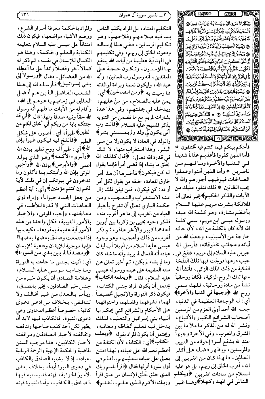 {وَيُكَلِّمُ النَّاسَ فِي الْمَهْدِ وَكَهْلا وَمِنَ الصَّالِحِينَ * قَالَتْ رَبِّ أَنَّى يَكُونُ لِي وَلَدٌ وَلَمْ يَمْسَسْنِي بَشَرٌ قَالَ كَذَلِكِ اللَّهُ يَخْلُقُ مَا يَشَاءُ إِذَا قَضَى أَمْرًا فَإِنَّمَا يَقُولُ لَهُ كُنْ فَيَكُونُ * وَيُعَلِّمُهُ الْكِتَابَ وَالْحِكْمَةَ وَالتَّوْرَاةَ وَالإنْجِيلَ * وَرَسُولا إِلَى بَنِي إِسْرَائِيلَ أَنِّي قَدْ جِئْتُكُمْ بِآيَةٍ مِنْ رَبِّكُمْ أَنِّي أَخْلُقُ لَكُمْ مِنَ الطِّينِ كَهَيْئَةِ الطَّيْرِ فَأَنْفُخُ فِيهِ فَيَكُونُ طَيْرًا بِإِذْنِ اللَّهِ وَأُبْرِئُ الأكْمَهَ وَالأبْرَصَ وَأُحْيِي الْمَوْتَى بِإِذْنِ اللَّهِ وَأُنَبِّئُكُمْ بِمَا تَأْكُلُونَ وَمَا تَدَّخِرُونَ فِي بُيُوتِكُمْ إِنَّ فِي ذَلِكَ لآيَةً لَكُمْ إِنْ كُنْتُمْ مُؤْمِنِينَ * وَمُصَدِّقًا لِمَا بَيْنَ يَدَيَّ مِنَ التَّوْرَاةِ وَلأحِلَّ لَكُمْ بَعْضَ الَّذِي حُرِّمَ عَلَيْكُمْ وَجِئْتُكُمْ بِآيَةٍ مِنْ رَبِّكُمْ فَاتَّقُوا اللَّهَ وَأَطِيعُونِ * إِنَّ اللَّهَ رَبِّي وَرَبُّكُمْ فَاعْبُدُوهُ هَذَا صِرَاطٌ مُسْتَقِيمٌ * فَلَمَّا أَحَسَّ عِيسَى مِنْهُمُ الْكُفْرَ قَالَ مَنْ أَنْصَارِي إِلَى اللَّهِ قَالَ الْحَوَارِيُّونَ نَحْنُ أَنْصَارُ اللَّهِ آمَنَّا بِاللَّهِ وَاشْهَدْ بِأَنَّا مُسْلِمُونَ} .