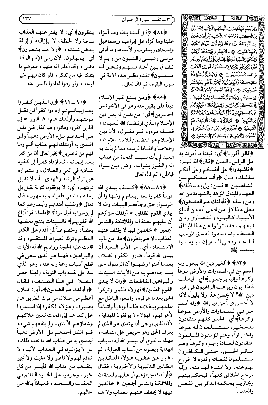 {٨٥} {وَمَنْ يَبْتَغِ غَيْرَ الإسْلامِ دِينًا فَلَنْ يُقْبَلَ مِنْهُ وَهُوَ فِي الآخِرَةِ مِنَ الْخَاسِرِينَ} .