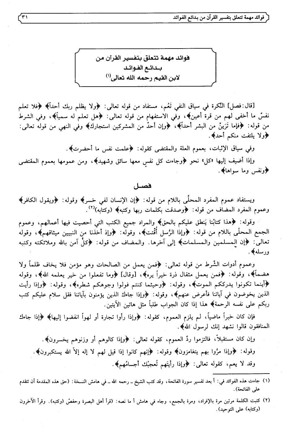 فوائد مهمة تتعلق بتفسير القرآن من بدائع الفوائد