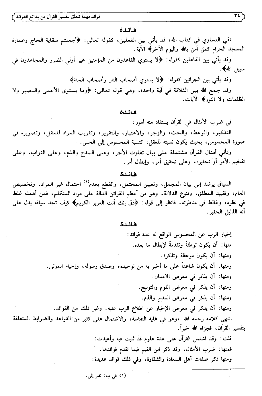 وتأتي أمثال القرآن مشتملة على بيان تفاوت الأجر، وعلى المدح والذم، وعلى الثواب، وعلى تفخيم الأمر أو تحقيره، وعلى تحقيق أمر، وإبطال أمر. فائدة