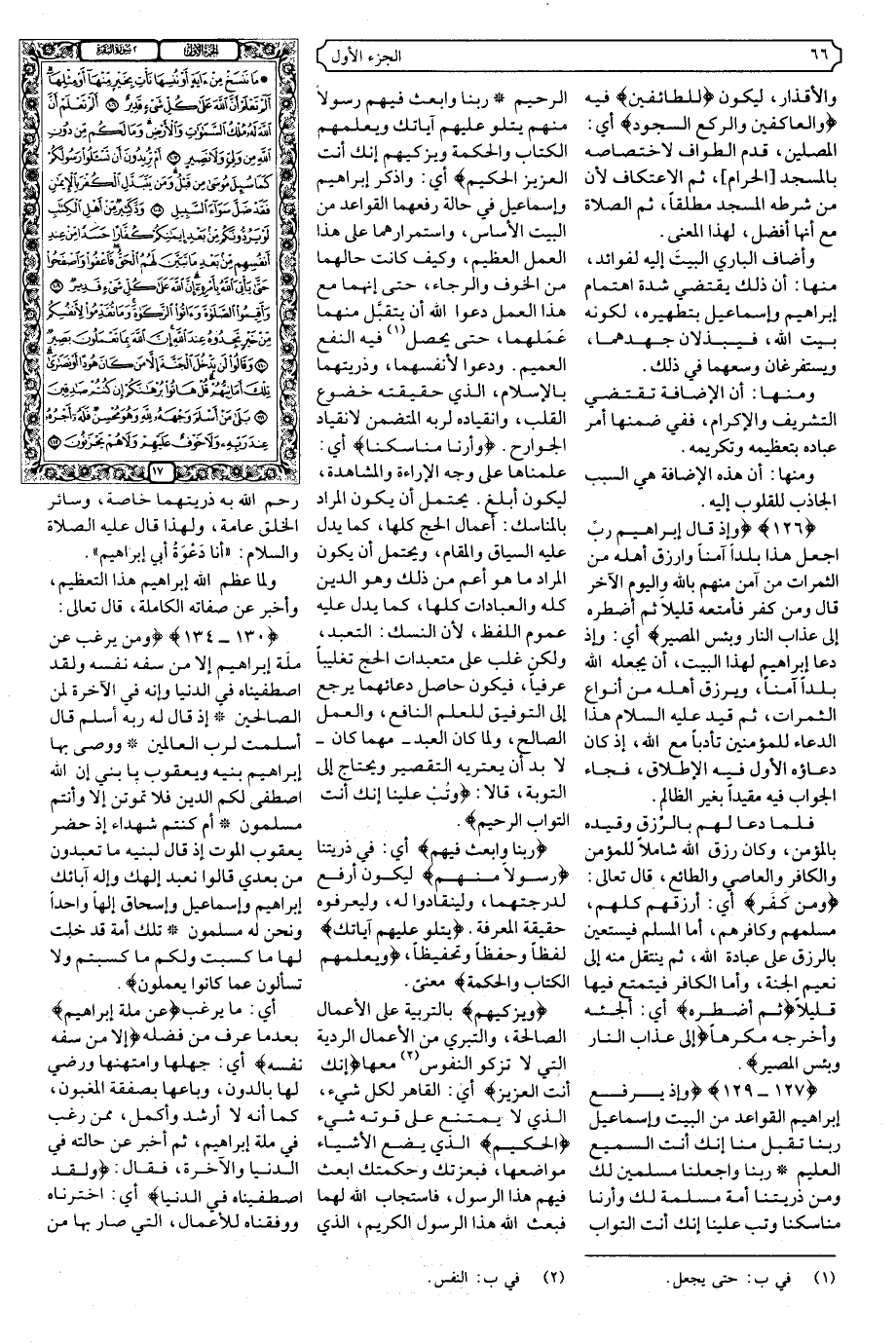 {١٢٧ - ١٢٩} {وَإِذْ يَرْفَعُ إِبْرَاهِيمُ الْقَوَاعِدَ مِنَ الْبَيْتِ وَإِسْمَاعِيلُ رَبَّنَا تَقَبَّلْ مِنَّا إِنَّكَ أَنْتَ السَّمِيعُ الْعَلِيمُ * رَبَّنَا وَاجْعَلْنَا مُسْلِمَيْنِ لَكَ وَمِنْ ذُرِّيَّتِنَا أُمَّةً مُسْلِمَةً لَكَ وَأَرِنَا مَنَاسِكَنَا وَتُبْ عَلَيْنَا إِنَّكَ أَنْتَ التَّوَّابُ الرَّحِيمُ * رَبَّنَا وَابْعَثْ فِيهِمْ رَسُولا مِنْهُمْ يَتْلُو عَلَيْهِمْ آيَاتِكَ وَيُعَلِّمُهُمُ الْكِتَابَ وَالْحِكْمَةَ وَيُزَكِّيهِمْ إِنَّكَ أَنْتَ الْعَزِيزُ الْحَكِيمُ} .