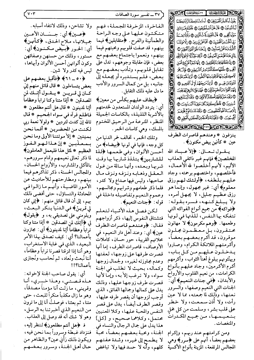 {يَقُولُ أَئِنَّكَ لَمِنَ الْمُصَدِّقِينَ * أَئِذَا مِتْنَا وَكُنَّا تُرَابًا وَعِظَامًا أَئِنَّا لَمَدِينُونَ * قَالَ هَلْ أَنْتُمْ مُطَّلِعُونَ * فَاطَّلَعَ فَرَآهُ فِي سَوَاءِ الْجَحِيمِ * قَالَ تَاللَّهِ إِنْ كِدْتَ لَتُرْدِينِ * وَلَوْلا نِعْمَةُ رَبِّي لَكُنْتُ مِنَ الْمُحْضَرِينَ * أَفَمَا نَحْنُ بِمَيِّتِينَ * إِلا مَوْتَتَنَا الأولَى وَمَا نَحْنُ بِمُعَذَّبِينَ * إِنَّ هَذَا لَهُوَ الْفَوْزُ الْعَظِيمُ * لِمِثْلِ هَذَا فَلْيَعْمَلِ الْعَامِلُونَ} .