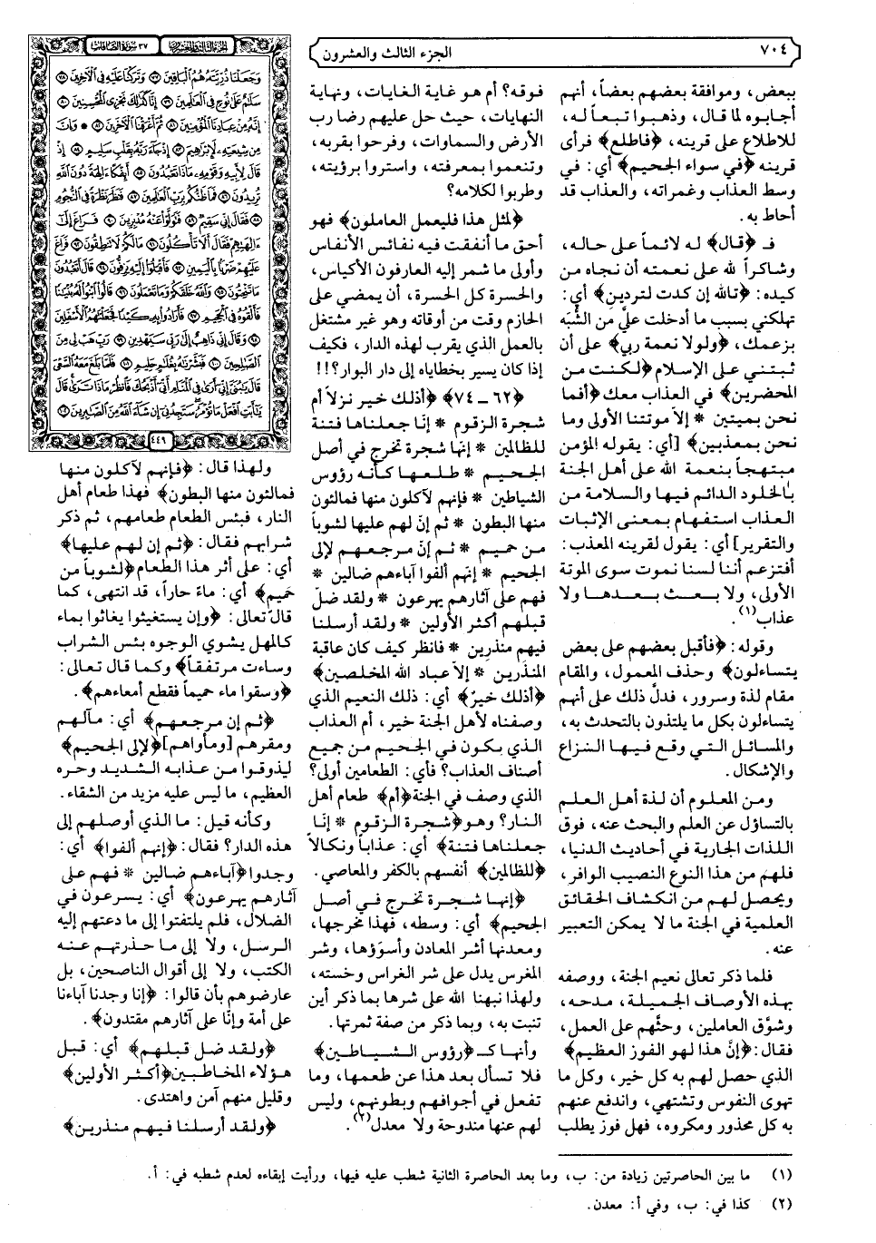 {٦٢ - ٧٤} {أَذَلِكَ خَيْرٌ نُزُلا أَمْ شَجَرَةُ الزَّقُّومِ * إِنَّا جَعَلْنَاهَا فِتْنَةً لِلظَّالِمِينَ * إِنَّهَا شَجَرَةٌ تَخْرُجُ فِي أَصْلِ الْجَحِيمِ * طَلْعُهَا كَأَنَّهُ رُءُوسُ الشَّيَاطِينِ * فَإِنَّهُمْ لآكِلُونَ مِنْهَا فَمَالِئُونَ مِنْهَا الْبُطُونَ * ثُمَّ إِنَّ لَهُمْ عَلَيْهَا لَشَوْبًا مِنْ حَمِيمٍ * ثُمَّ إِنَّ مَرْجِعَهُمْ لإلَى الْجَحِيمِ * إِنَّهُمْ أَلْفَوْا آبَاءَهُمْ ضَالِّينَ * فَهُمْ عَلَى آثَارِهِمْ يُهْرَعُونَ * وَلَقَدْ ضَلَّ قَبْلَهُمْ أَكْثَرُ الأوَّلِينَ * وَلَقَدْ أَرْسَلْنَا فِيهِمْ مُنْذِرِينَ * فَانْظُرْ كَيْفَ كَانَ عَاقِبَةُ الْمُنْذَرِينَ * إِلا عِبَادَ اللَّهِ الْمُخْلَصِينَ} .