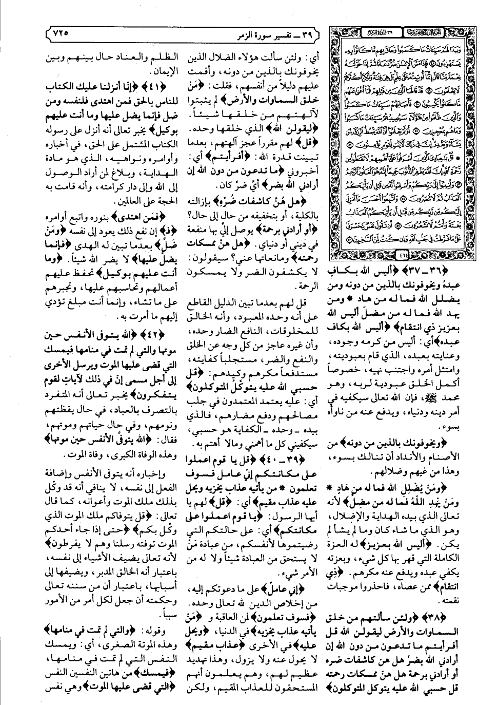 {٣٨} {وَلَئِنْ سَأَلْتَهُمْ مَنْ خَلَقَ السَّمَاوَاتِ وَالأرْضَ لَيَقُولُنَّ اللَّهُ قُلْ أَفَرَأَيْتُمْ مَا تَدْعُونَ مِنْ دُونِ اللَّهِ إِنْ أَرَادَنِيَ اللَّهُ بِضُرٍّ هَلْ هُنَّ كَاشِفَاتُ ضُرِّهِ أَوْ أَرَادَنِي بِرَحْمَةٍ هَلْ هُنَّ مُمْسِكَاتُ رَحْمَتِهِ قُلْ حَسْبِيَ اللَّهُ عَلَيْهِ يَتَوَكَّلُ الْمُتَوَكِّلُونَ} .