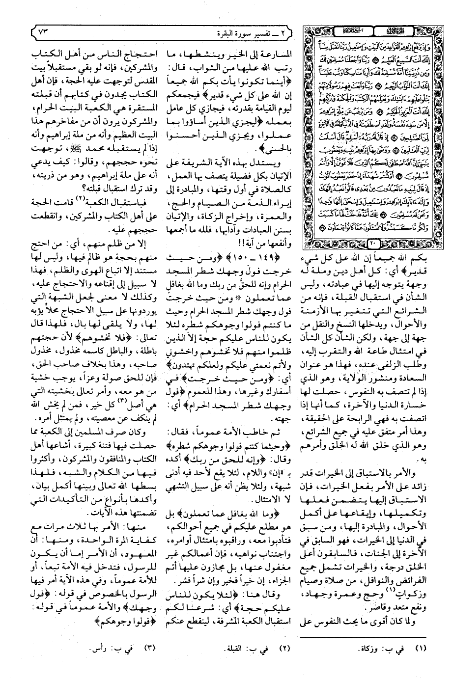 {١٤٩ - ١٥٠} {وَمِنْ حَيْثُ خَرَجْتَ فَوَلِّ وَجْهَكَ شَطْرَ الْمَسْجِدِ الْحَرَامِ وَإِنَّهُ لَلْحَقُّ مِنْ رَبِّكَ وَمَا اللَّهُ بِغَافِلٍ عَمَّا تَعْمَلُونَ * وَمِنْ حَيْثُ خَرَجْتَ فَوَلِّ وَجْهَكَ شَطْرَ الْمَسْجِدِ الْحَرَامِ وَحَيْثُمَا كُنْتُمْ فَوَلُّوا وُجُوهَكُمْ شَطْرَهُ لِئَلا يَكُونَ لِلنَّاسِ عَلَيْكُمْ حُجَّةٌ إِلا الَّذِينَ ظَلَمُوا مِنْهُمْ فَلا تَخْشَوْهُمْ وَاخْشَوْنِي وَلأتِمَّ نِعْمَتِي عَلَيْكُمْ وَلَعَلَّكُمْ تَهْتَدُونَ} .