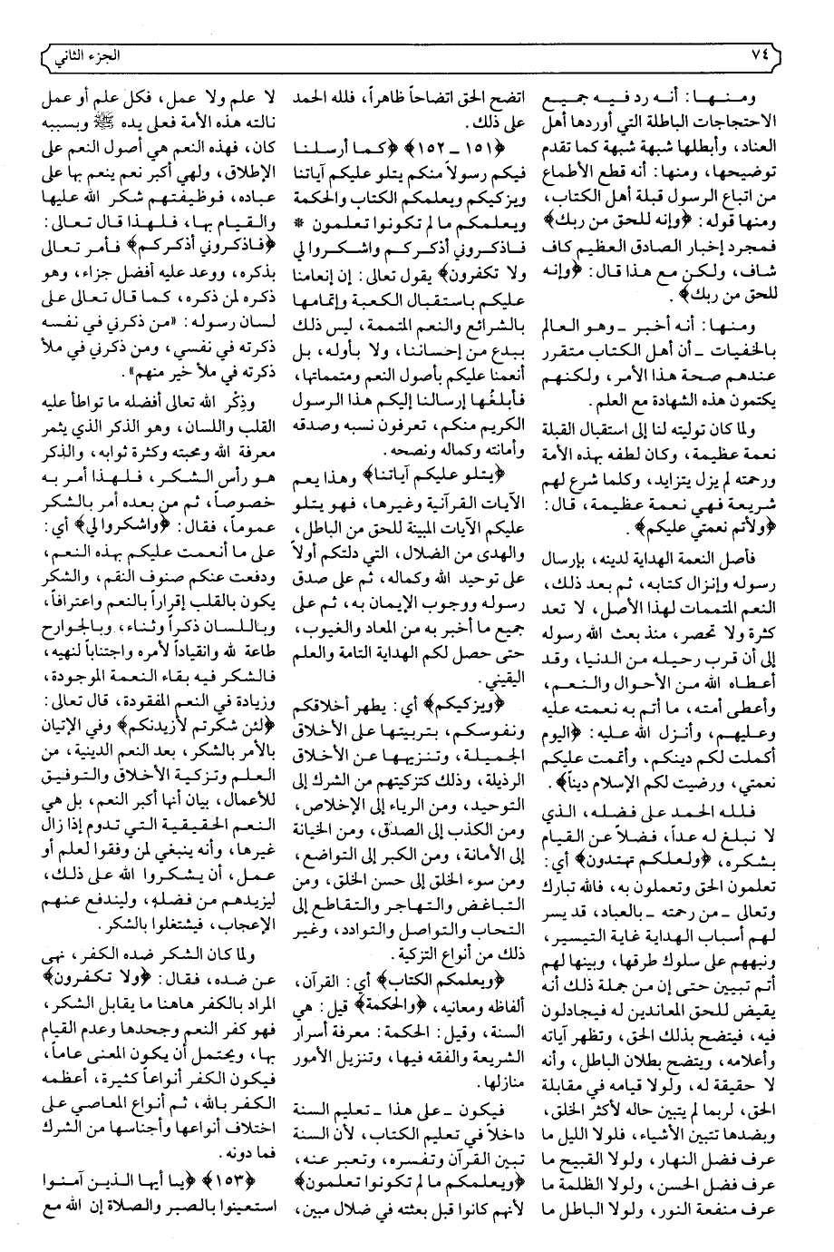 {١٥١ - ١٥٢} {كَمَا أَرْسَلْنَا فِيكُمْ رَسُولا مِنْكُمْ يَتْلُو عَلَيْكُمْ آيَاتِنَا وَيُزَكِّيكُمْ وَيُعَلِّمُكُمُ الْكِتَابَ وَالْحِكْمَةَ وَيُعَلِّمُكُمْ مَا لَمْ تَكُونُوا تَعْلَمُونَ * فَاذْكُرُونِي أَذْكُرْكُمْ وَاشْكُرُوا لِي وَلا تَكْفُرُونِ} .