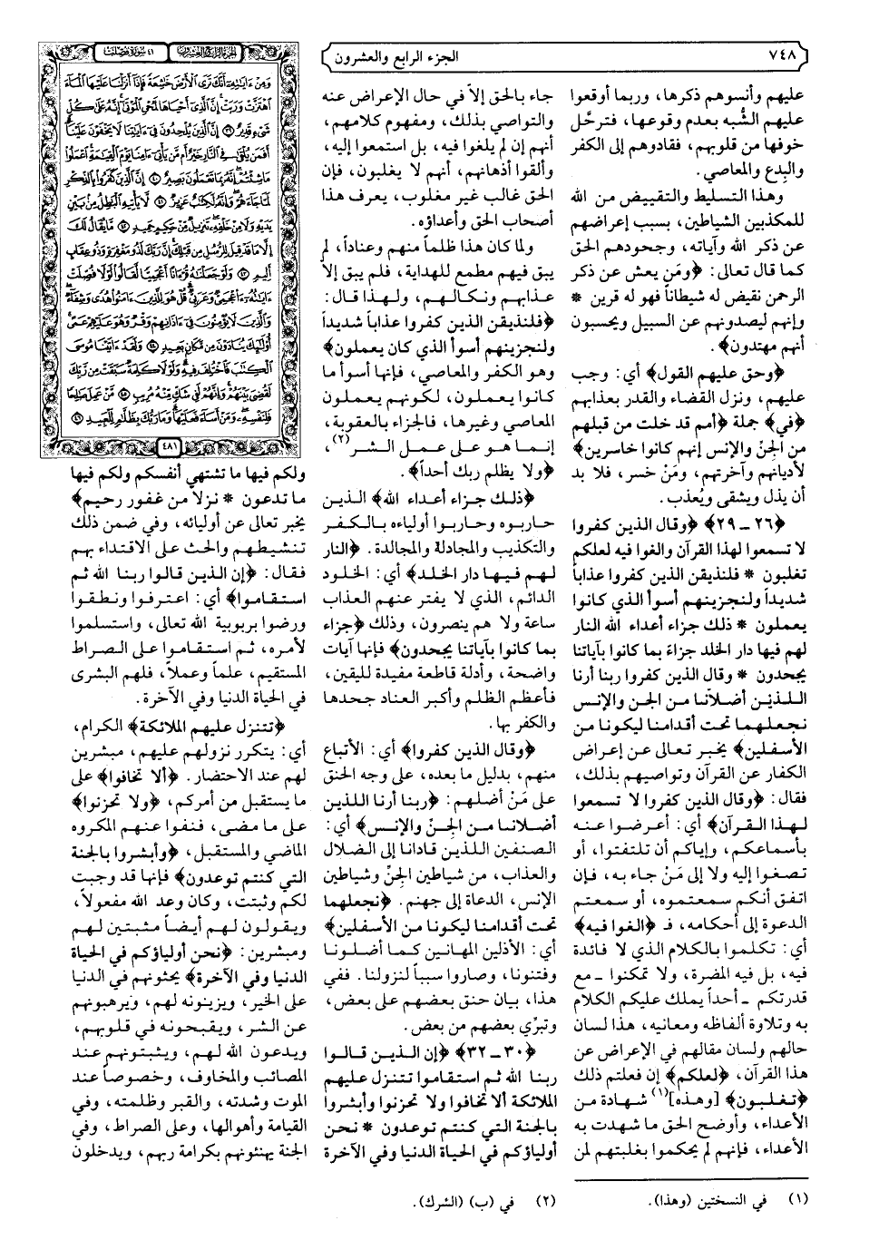 {٢٦ - ٢٩} {وَقَالَ الَّذِينَ كَفَرُوا لا تَسْمَعُوا لِهَذَا الْقُرْآنِ وَالْغَوْا فِيهِ لَعَلَّكُمْ تَغْلِبُونَ * فَلَنُذِيقَنَّ الَّذِينَ كَفَرُوا عَذَابًا شَدِيدًا وَلَنَجْزِيَنَّهُمْ أَسْوَأَ الَّذِي كَانُوا يَعْمَلُونَ * ذَلِكَ جَزَاءُ أَعْدَاءِ اللَّهِ النَّارُ لَهُمْ فِيهَا دَارُ الْخُلْدِ جَزَاءً بِمَا كَانُوا بِآيَاتِنَا يَجْحَدُونَ * وَقَالَ الَّذِينَ كَفَرُوا رَبَّنَا أَرِنَا الَّذَيْنِ أَضَلانَا مِنَ الْجِنِّ وَالإنْسِ نَجْعَلْهُمَا تَحْتَ أَقْدَامِنَا لِيَكُونَا مِنَ الأسْفَلِينَ} .