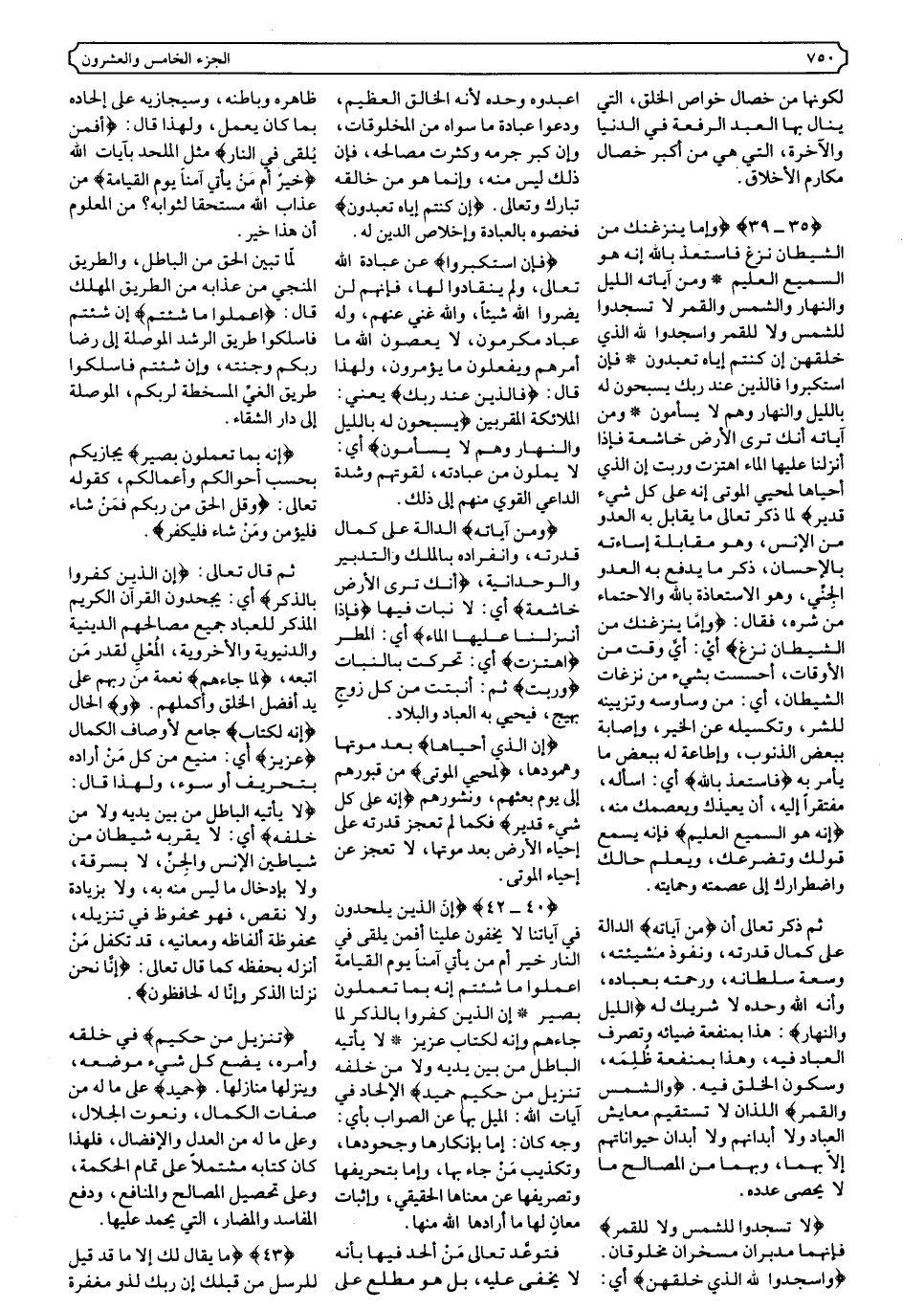 {٣٦ - ٣٩} {وَإِمَّا يَنْزَغَنَّكَ مِنَ الشَّيْطَانِ نَزْغٌ فَاسْتَعِذْ بِاللَّهِ إِنَّهُ هُوَ السَّمِيعُ الْعَلِيمُ * وَمِنْ آيَاتِهِ اللَّيْلُ وَالنَّهَارُ وَالشَّمْسُ وَالْقَمَرُ لا تَسْجُدُوا لِلشَّمْسِ وَلا لِلْقَمَرِ وَاسْجُدُوا لِلَّهِ الَّذِي خَلَقَهُنَّ إِنْ كُنْتُمْ إِيَّاهُ تَعْبُدُونَ * فَإِنِ اسْتَكْبَرُوا فَالَّذِينَ عِنْدَ رَبِّكَ يُسَبِّحُونَ لَهُ بِاللَّيْلِ وَالنَّهَارِ وَهُمْ لا يَسْأَمُونَ} .