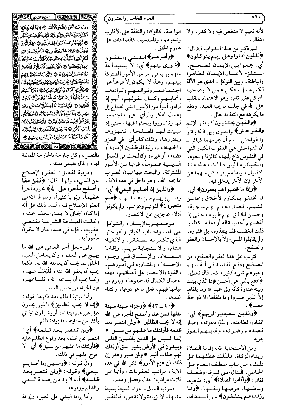 {٤٠-٤٣} {وَجَزَاءُ سَيِّئَةٍ سَيِّئَةٌ مِثْلُهَا فَمَنْ عَفَا وَأَصْلَحَ فَأَجْرُهُ عَلَى اللَّهِ إِنَّهُ لا يُحِبُّ الظَّالِمِينَ * وَلَمَنِ انْتَصَرَ بَعْدَ ظُلْمِهِ فَأُولَئِكَ مَا عَلَيْهِمْ مِنْ سَبِيلٍ * إِنَّمَا السَّبِيلُ عَلَى الَّذِينَ يَظْلِمُونَ النَّاسَ وَيَبْغُونَ فِي الأرْضِ بِغَيْرِ الْحَقِّ أُولَئِكَ لَهُمْ عَذَابٌ أَلِيمٌ * وَلَمَنْ صَبَرَ وَغَفَرَ إِنَّ ذَلِكَ لَمِنْ عَزْمِ الأمُورِ} .
