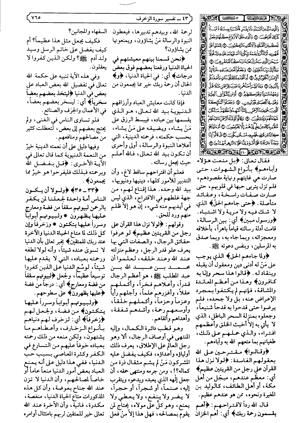 {٣٣-٣٥} {وَلَوْلا أَنْ يَكُونَ النَّاسُ أُمَّةً وَاحِدَةً لَجَعَلْنَا لِمَنْ يَكْفُرُ بِالرَّحْمَنِ لِبُيُوتِهِمْ سُقُفًا مِنْ فَضَّةٍ وَمَعَارِجَ عَلَيْهَا يَظْهَرُونَ *} .