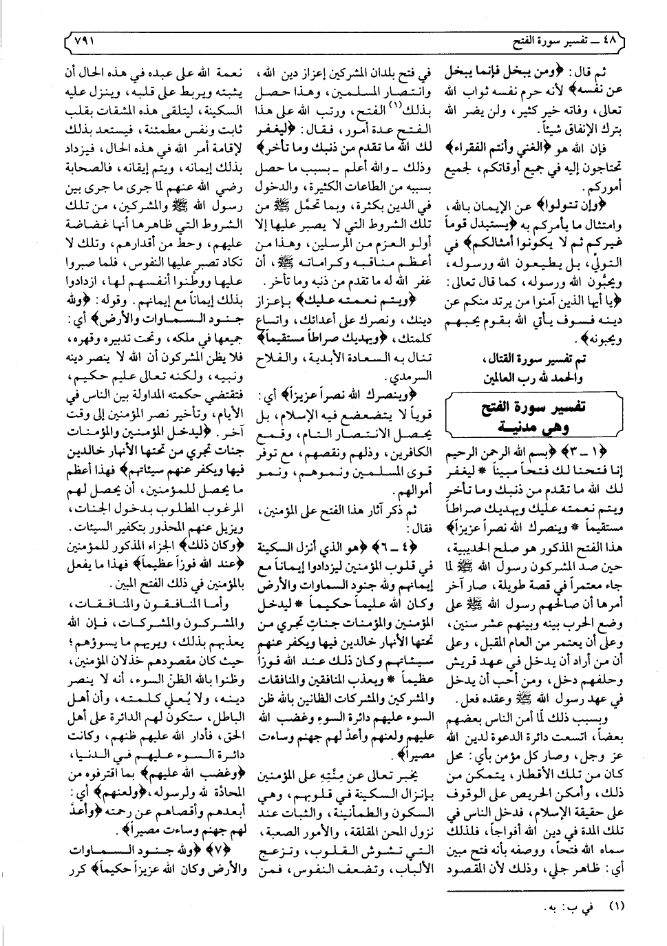 {١-٣} {بِسْمِ اللَّهِ الرَّحْمَنِ الرَّحِيمِ إِنَّا فَتَحْنَا لَكَ فَتْحًا مُبِينًا * لِيَغْفِرَ لَكَ اللَّهُ مَا تَقَدَّمَ مِنْ ذَنْبِكَ وَمَا تَأَخَّرَ وَيُتِمَّ نِعْمَتَهُ عَلَيْكَ وَيَهْدِيَكَ صِرَاطًا مُسْتَقِيمًا * وَيَنْصُرَكَ اللَّهُ نَصْرًا عَزِيزًا} .
