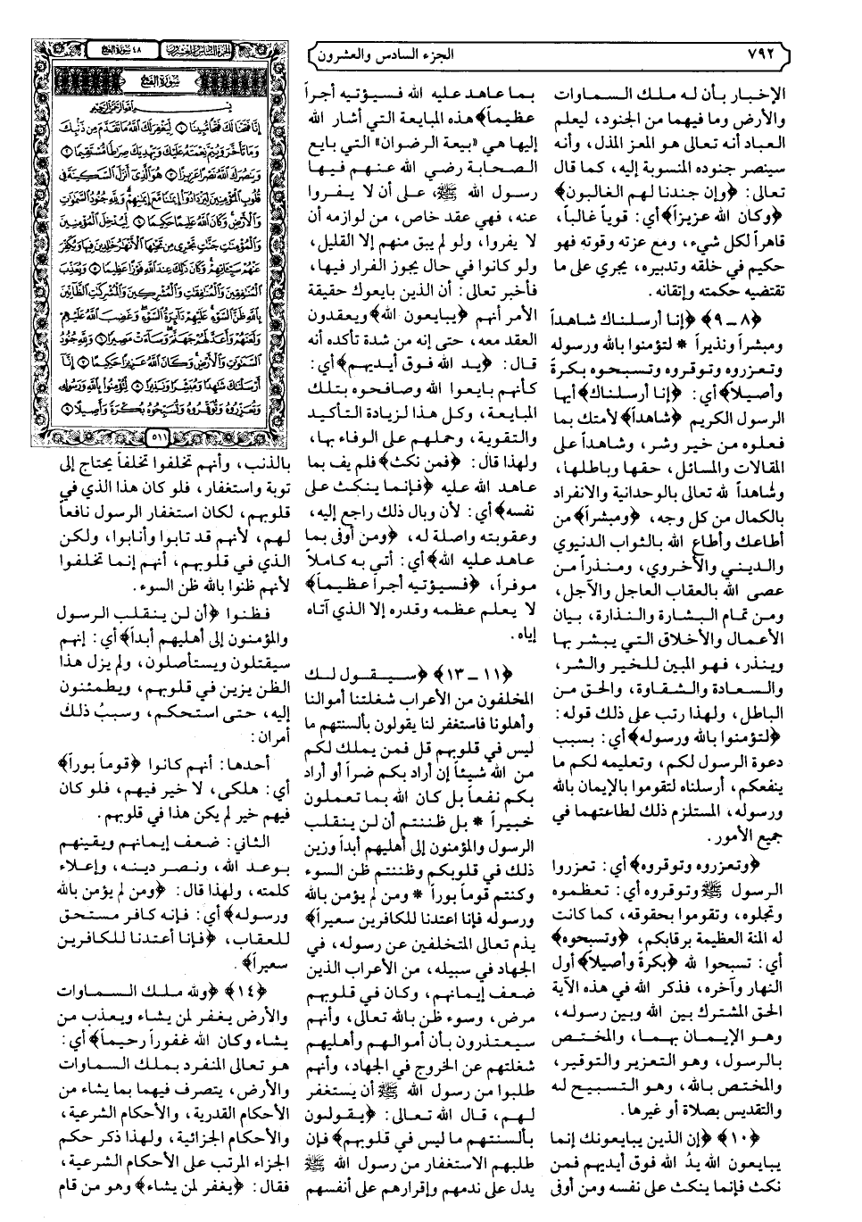 {١٠} {إِنَّ الَّذِينَ يُبَايِعُونَكَ إِنَّمَا يُبَايِعُونَ اللَّهَ يَدُ اللَّهِ فَوْقَ أَيْدِيهِمْ فَمَنْ نَكَثَ فَإِنَّمَا يَنْكُثُ عَلَى نَفْسِهِ وَمَنْ أَوْفَى بِمَا عَاهَدَ عَلَيْهُ اللَّهَ فَسَيُؤْتِيهِ أَجْرًا عَظِيمًا} .