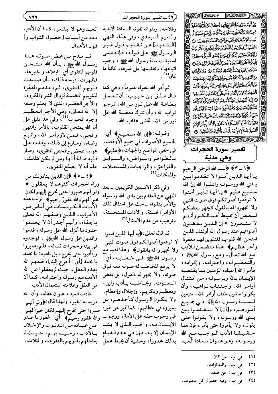 {١-٣} {بِسْمِ اللَّهِ الرَّحْمَنِ الرَّحِيمِ يَا أَيُّهَا الَّذِينَ آمَنُوا لا تُقَدِّمُوا بَيْنَ يَدَيِ اللَّهِ وَرَسُولِهِ وَاتَّقُوا اللَّهَ إِنَّ اللَّهَ سَمِيعٌ عَلِيمٌ * يَا أَيُّهَا الَّذِينَ آمَنُوا لا تَرْفَعُوا أَصْوَاتَكُمْ فَوْقَ صَوْتِ النَّبِيِّ وَلا تَجْهَرُوا لَهُ بِالْقَوْلِ كَجَهْرِ بَعْضِكُمْ لِبَعْضٍ أَنْ تَحْبَطَ أَعْمَالُكُمْ وَأَنْتُمْ لا تَشْعُرُونَ * إِنَّ الَّذِينَ يَغُضُّونَ أَصْوَاتَهُمْ عِنْدَ رَسُولِ اللَّهِ أُولَئِكَ الَّذِينَ امْتَحَنَ اللَّهُ قُلُوبَهُمْ لِلتَّقْوَى لَهُمْ مَغْفِرَةٌ وَأَجْرٌ عَظِيمٌ} .