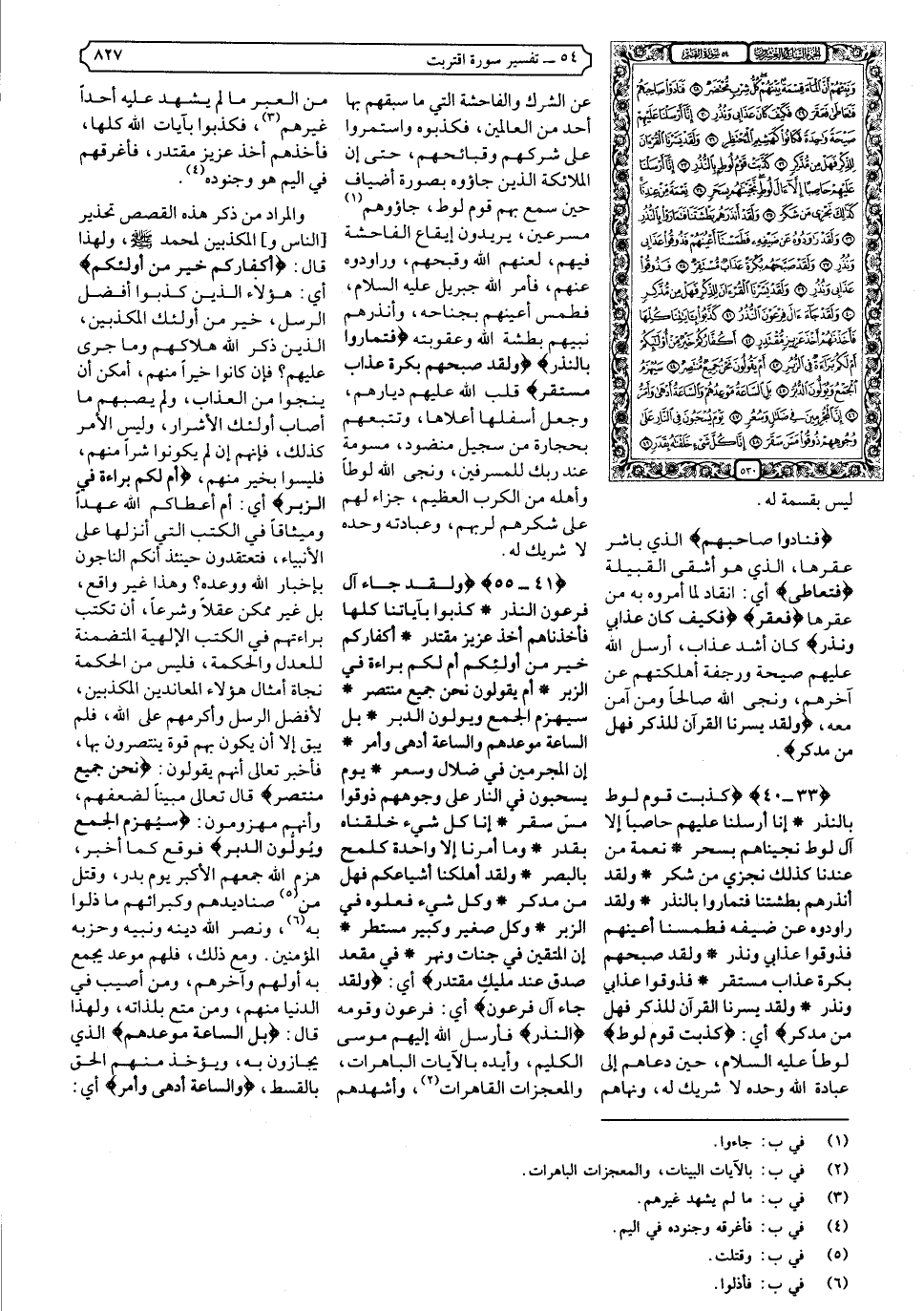{٤١-٥٥} {وَلَقَدْ جَاءَ آلَ فِرْعَوْنَ النُّذُرُ * كَذَّبُوا بِآيَاتِنَا كُلِّهَا فَأَخَذْنَاهُمْ أَخْذَ عَزِيزٍ مُقْتَدِرٍ * أَكُفَّارُكُمْ خَيْرٌ مِنْ أُولَئِكُمْ أَمْ لَكُمْ بَرَاءَةٌ فِي الزُّبُرِ * أَمْ يَقُولُونَ نَحْنُ جَمِيعٌ مُنْتَصِرٌ * سَيُهْزَمُ الْجَمْعُ وَيُوَلُّونَ الدُّبُرَ * بَلِ السَّاعَةُ مَوْعِدُهُمْ وَالسَّاعَةُ أَدْهَى وَأَمَرُّ * إِنَّ الْمُجْرِمِينَ فِي ضَلالٍ وَسُعُرٍ * يَوْمَ يُسْحَبُونَ فِي النَّارِ عَلَى وُجُوهِهِمْ ذُوقُوا مَسَّ سَقَرَ * إِنَّا كُلَّ شَيْءٍ خَلَقْنَاهُ بِقَدَرٍ} .
