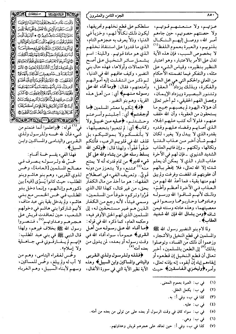 {فَلِلَّهِ وَلِلرَّسُولِ وَلِذِي الْقُرْبَى وَالْيَتَامَى وَالْمَسَاكِينِ وَابْنِ السَّبِيلِ} وهذه الآية نظير الآية التي في سورة الأنفال، في (٤) قوله: {وَاعْلَمُوا أَنَّمَا غَنِمْتُمْ مِنْ شَيْءٍ فَأَنَّ لِلَّهِ خُمُسَهُ وَلِلرَّسُولِ وَلِذِي الْقُرْبَى وَالْيَتَامَى وَالْمَسَاكِينِ وَابْنِ السَّبِيلِ}