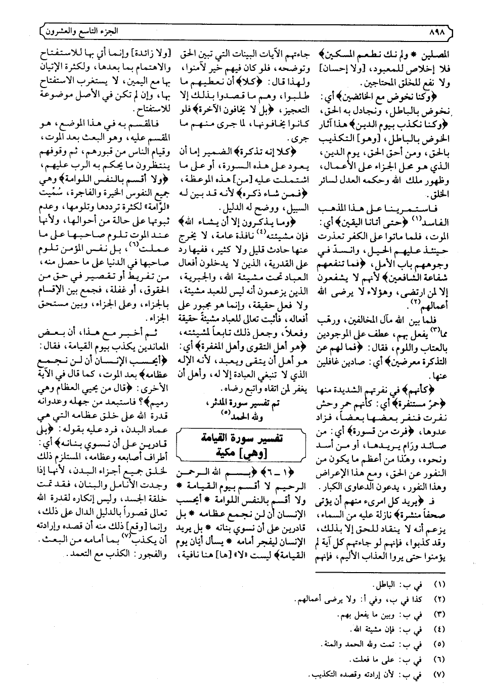 {١ - ٦} {بِسْمِ اللَّهِ الرَّحْمَنِ الرَّحِيمِ لا أُقْسِمُ بِيَوْمِ الْقِيَامَةِ * وَلا أُقْسِمُ بِالنَّفْسِ اللَّوَّامَةِ * أَيَحْسَبُ الإنْسَانُ أَلَّنْ نَجْمَعَ عِظَامَهُ * بَلَى قَادِرِينَ عَلَى أَنْ نُسَوِّيَ بَنَانَهُ * بَلْ يُرِيدُ الإنْسَانُ لِيَفْجُرَ أَمَامَهُ * يَسْأَلُ أَيَّانَ يَوْمُ الْقِيَامَةِ} .