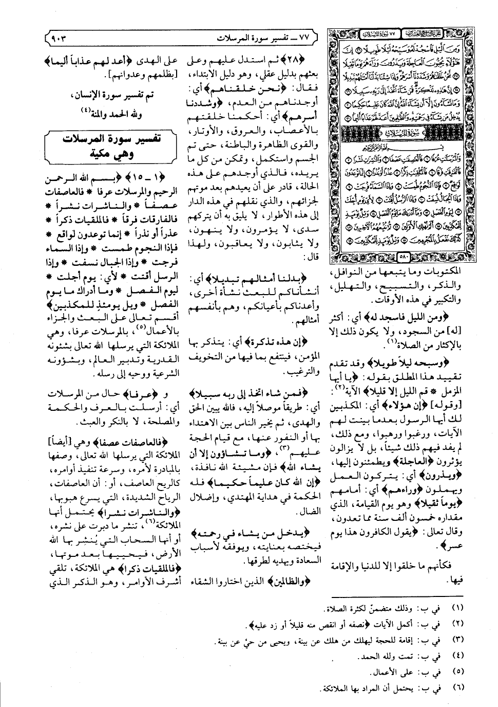 {١ - ١٥} {بِسْمِ اللَّهِ الرَّحْمَنِ الرَّحِيمِ وَالْمُرْسَلاتِ عُرْفًا * فَالْعَاصِفَاتِ عَصْفًا وَالنَّاشِرَاتِ نَشْرًا * فَالْفَارِقَاتِ فَرْقًا * فَالْمُلْقِيَاتِ ذِكْرًا * عُذْرًا أَوْ نُذْرًا * إِنَّمَا تُوعَدُونَ لَوَاقِعٌ * فَإِذَا النُّجُومُ طُمِسَتْ * وَإِذَا السَّمَاءُ فُرِجَتْ * وَإِذَا الْجِبَالُ نُسِفَتْ * وَإِذَا الرُّسُلُ أُقِّتَتْ * لأيِّ يَوْمٍ أُجِّلَتْ * لِيَوْمِ الْفَصْلِ * وَمَا أَدْرَاكَ مَا يَوْمُ الْفَصْلِ * وَيْلٌ يَوْمَئِذٍ لِلْمُكَذِّبِينَ} .