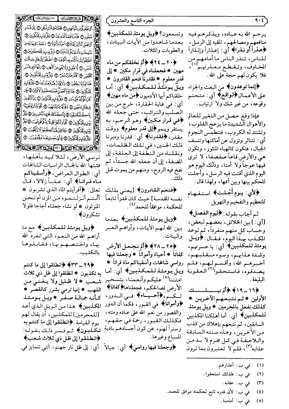 {٢٠ -٢٤} {أَلَمْ نَخْلُقْكُمْ مِنْ مَاءٍ مَهِينٍ * فَجَعَلْنَاهُ فِي قَرَارٍ مَكِينٍ * إِلَى قَدَرٍ مَعْلُومٍ * فَقَدَرْنَا فَنِعْمَ الْقَادِرُونَ * وَيْلٌ يَوْمَئِذٍ لِلْمُكَذِّبِينَ} .