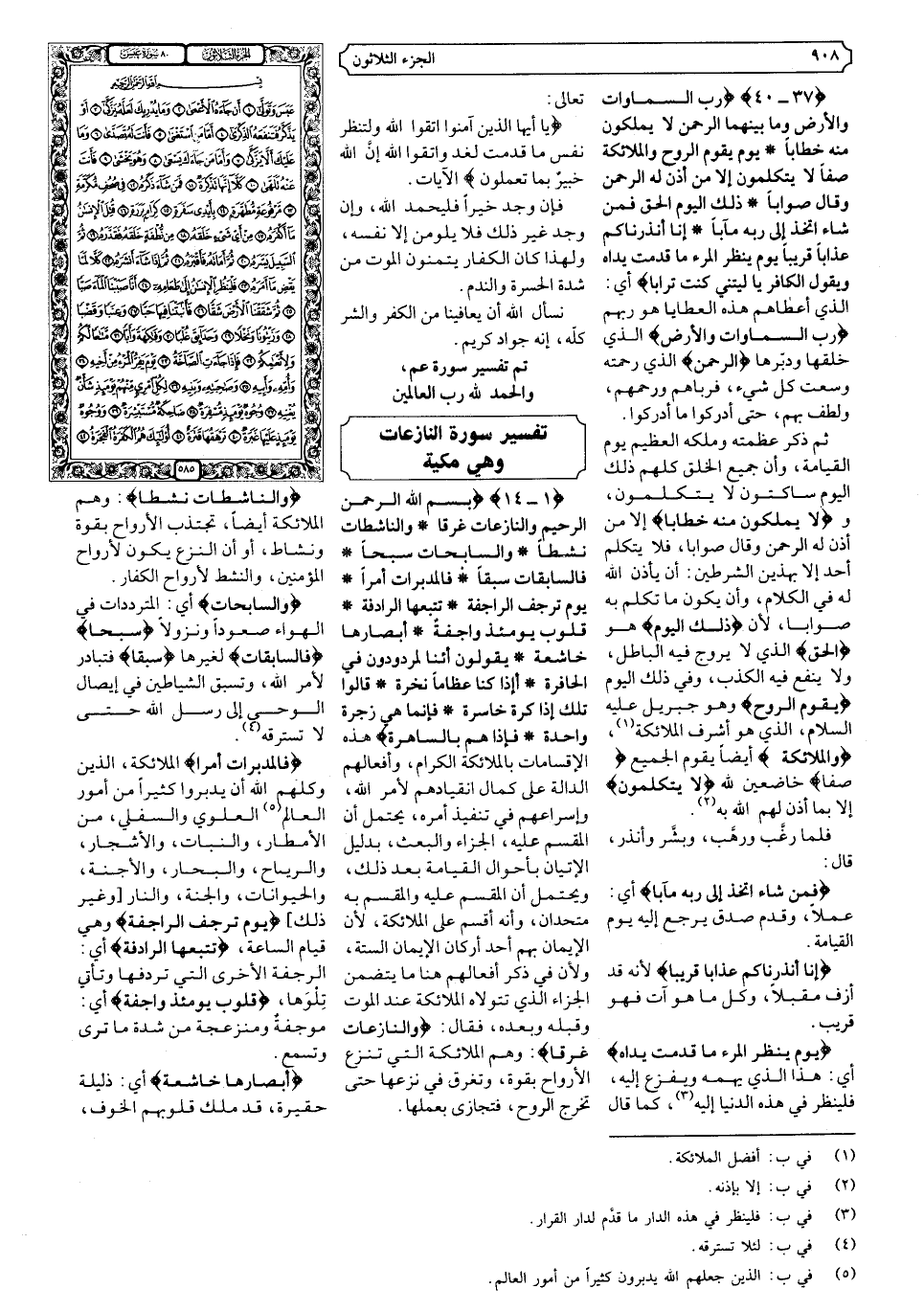 {١ - ١٤} {بِسْمِ اللَّهِ الرَّحْمَنِ الرَّحِيمِ وَالنَّازِعَاتِ غَرْقًا * وَالنَّاشِطَاتِ نَشْطًا * وَالسَّابِحَاتِ سَبْحًا * فَالسَّابِقَاتِ سَبْقًا * فَالْمُدَبِّرَاتِ أَمْرًا * يَوْمَ تَرْجُفُ الرَّاجِفَةُ * تَتْبَعُهَا الرَّادِفَةُ * قُلُوبٌ يَوْمَئِذٍ وَاجِفَةٌ * أَبْصَارُهَا خَاشِعَةٌ * يَقُولُونَ أَئِنَّا لَمَرْدُودُونَ فِي الْحَافِرَةِ * أَئِذَا كُنَّا عِظَامًا نَخِرَةً * قَالُوا تِلْكَ إِذًا كَرَّةٌ خَاسِرَةٌ * فَإِنَّمَا هِيَ زَجْرَةٌ وَاحِدَةٌ * فَإِذَا هُمْ بِالسَّاهِرَةِ} .