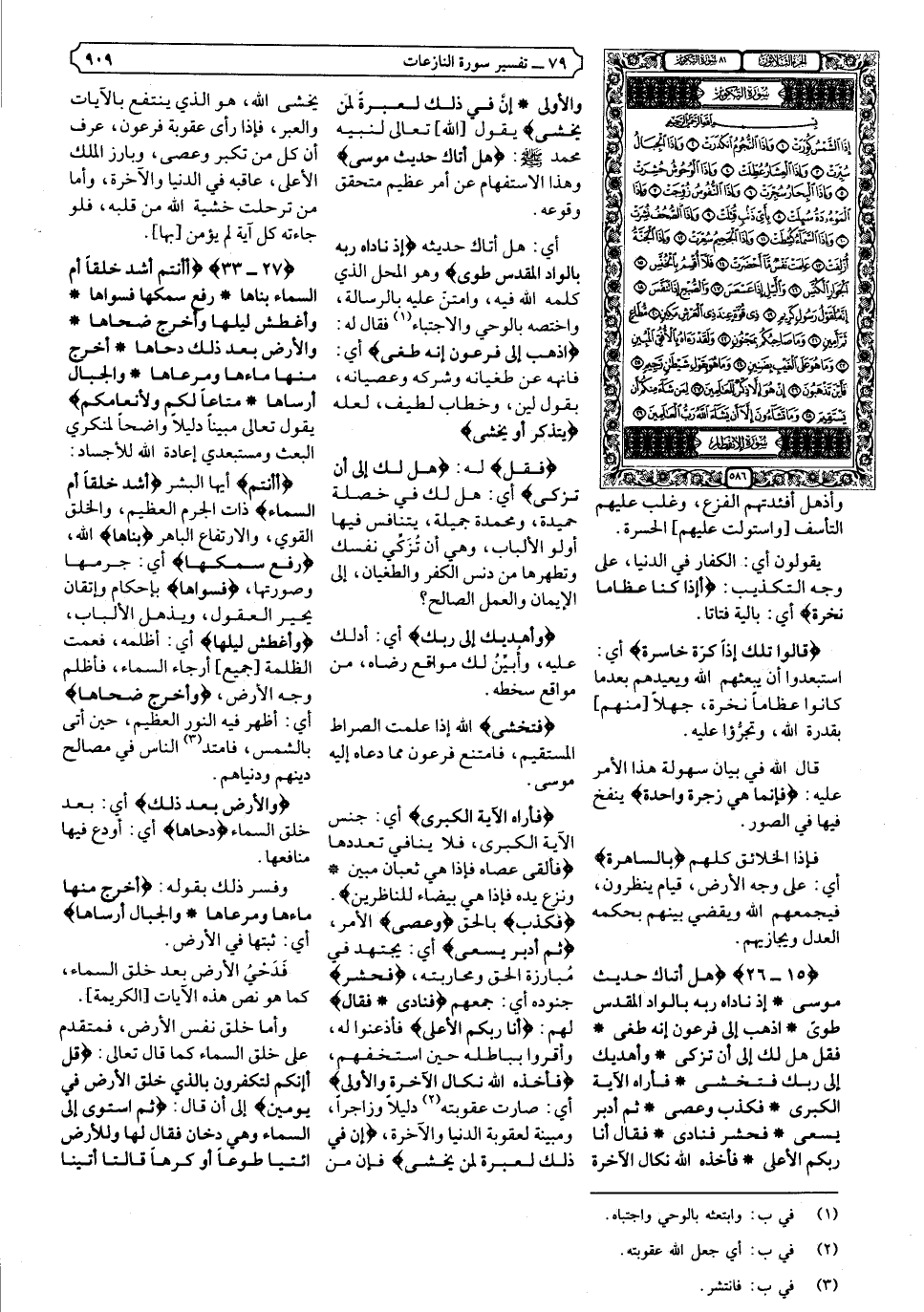 {إِذْ نَادَاهُ رَبُّهُ بِالْوَادِي الْمُقَدَّسِ طُوًى * اذْهَبْ إِلَى فِرْعَوْنَ إِنَّهُ طَغَى * فَقُلْ هَلْ لَكَ إِلَى أَنْ تَزَكَّى * وَأَهْدِيَكَ إِلَى رَبِّكَ فَتَخْشَى * فَأَرَاهُ الآيَةَ الْكُبْرَى * فَكَذَّبَ وَعَصَى * ثُمَّ أَدْبَرَ يَسْعَى * فَحَشَرَ فَنَادَى * فَقَالَ أَنَا رَبُّكُمُ الأعْلَى * فَأَخَذَهُ اللَّهُ نَكَالَ الآخِرَةِ وَالأولَى * إِنَّ فِي ذَلِكَ لَعِبْرَةً لِمَنْ يَخْشَى} .