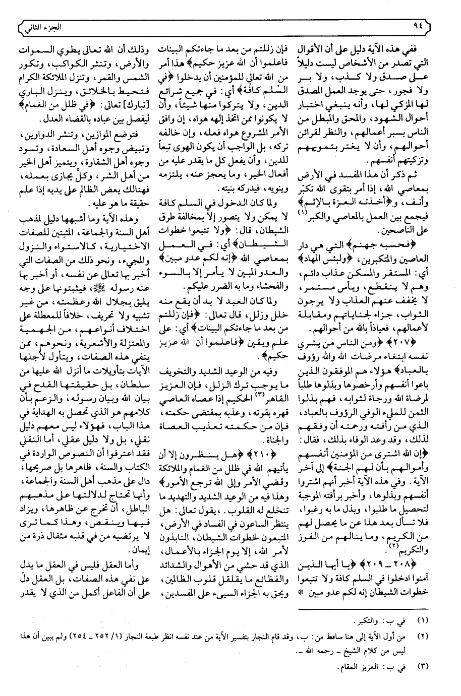 {٢٠٨ - ٢٠٩} {يَا أَيُّهَا الَّذِينَ آمَنُوا ادْخُلُوا فِي السِّلْمِ كَافَّةً وَلا تَتَّبِعُوا خُطُوَاتِ الشَّيْطَانِ إِنَّهُ لَكُمْ عَدُوٌّ مُبِينٌ * فَإِنْ زَلَلْتُمْ مِنْ بَعْدِ مَا جَاءَتْكُمُ الْبَيِّنَاتُ فَاعْلَمُوا أَنَّ اللَّهَ عَزِيزٌ حَكِيمٌ} .