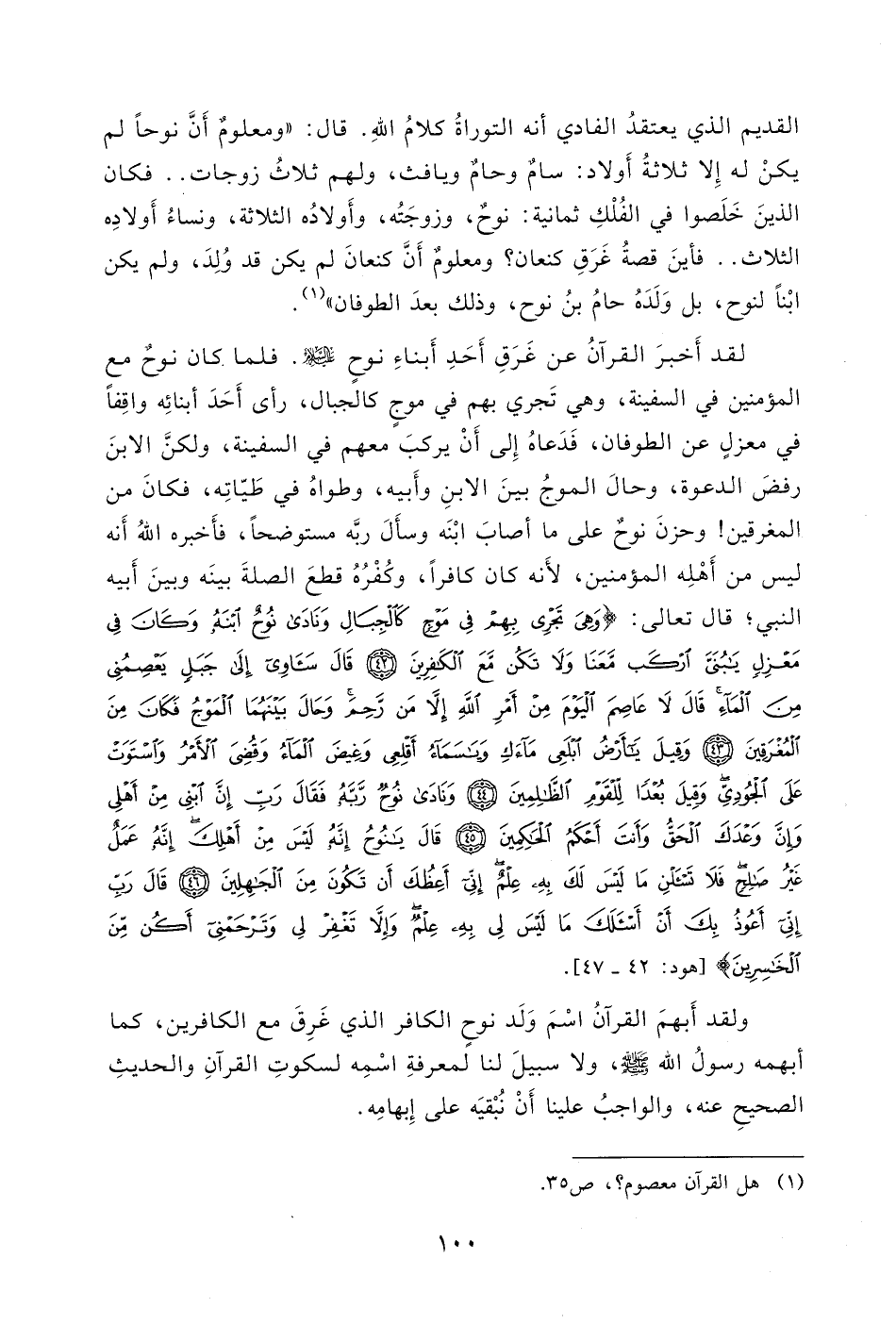 ومعلومٌ أَنَّ كنعانَ لم يكن قد وُلِدَ، ولم يكن ابْناً لنوح، بل وَلَدَهُ حامُ بنُ نوح، وذلك بعدَ الطوفان ".