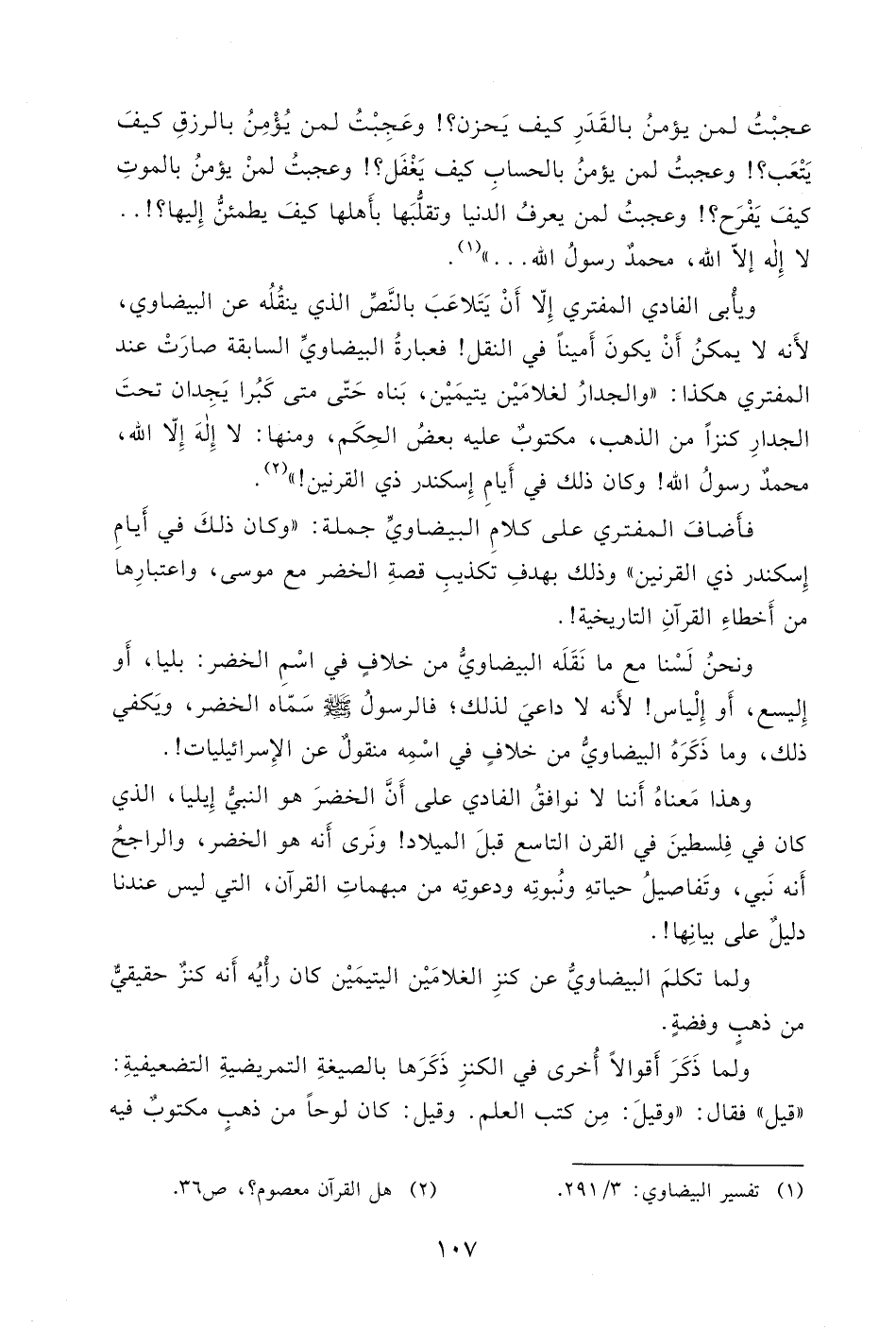 إِسكندر ذي القرنين " وذلك بهدفِ تكذيبِ قصةِ الخضر مع موسى، واعتبارِها من أَخطاءِ القرآنِ التاريخية!.
