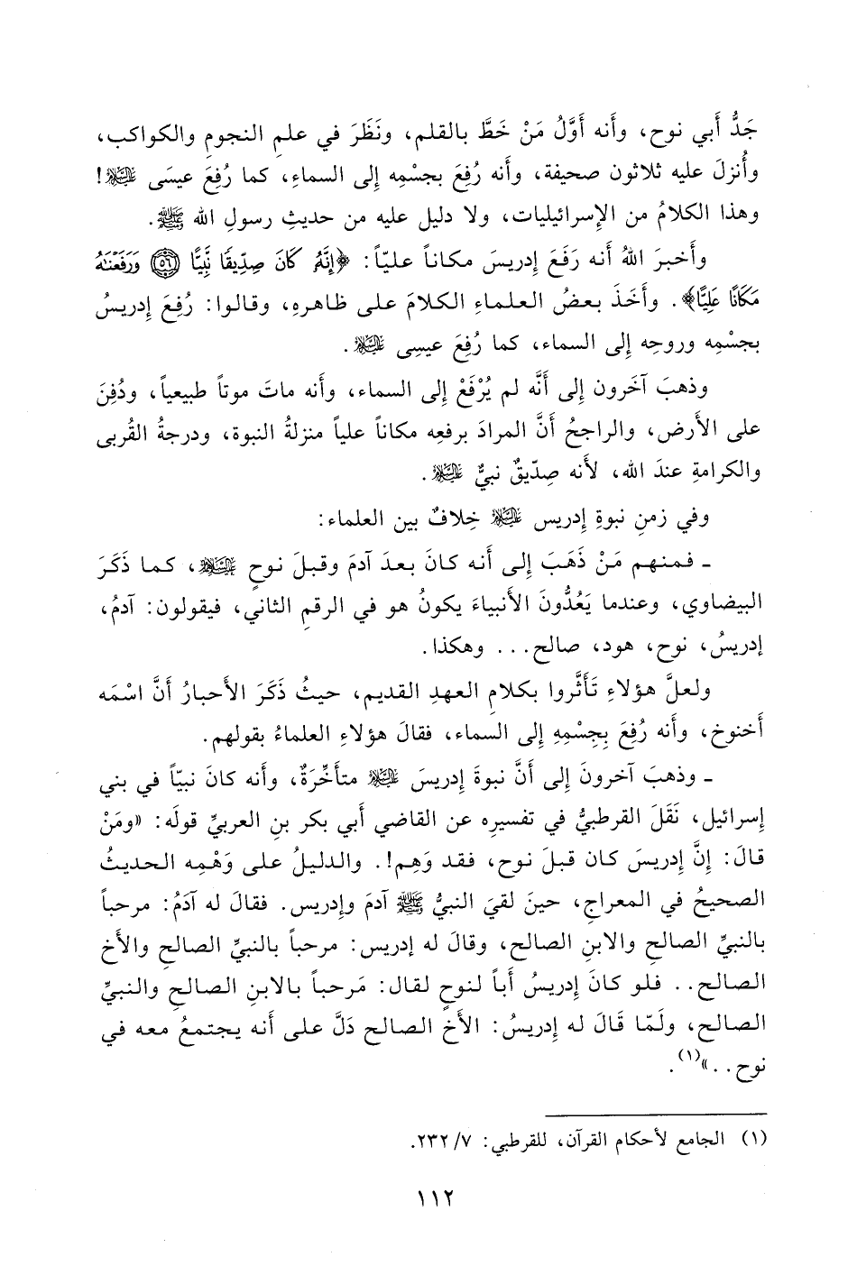 فلو كانَ إِدريسُ أَباً لنوحٍ لقال: مَرحباً بالابنِ الصالحِ والنبيِّ الصالح، ولَمّا قَالَ له إِدريسُ: الأَخ الصالح دَلَّ على أَنه يجتمعُ معه في نوح (1) ..