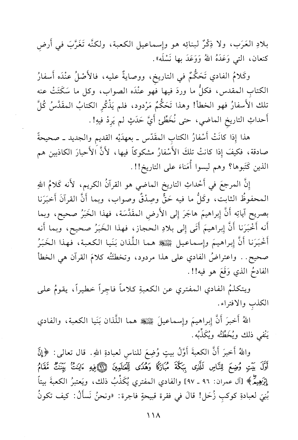 والفادي المفترِي يُكَذِّبُ ذلك، ويَعتبرُ الكعبةَ بيتاً بُنِيَ لعبادةِ كوكبِ زُحَل! قالَ في فقرة قبيحةٍ فاجرة: " ونحنُ نَسأَلُ: كيف تكونُ