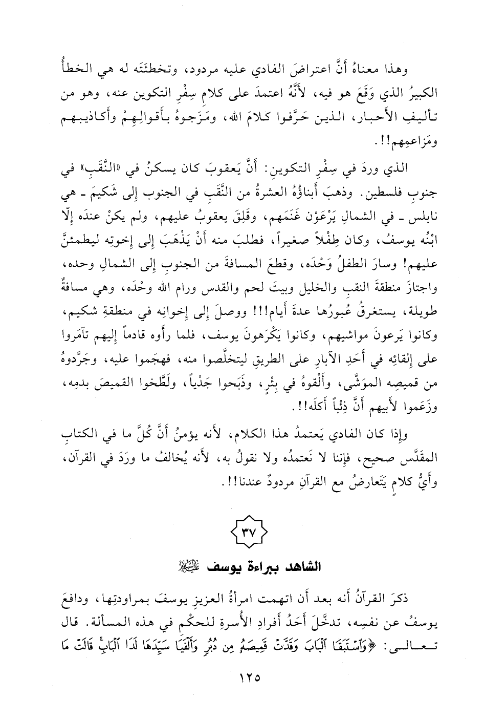 وإِذا كان الفادي يَعتمدُ هذا الكلام، لأَنه يؤمنُ أَنَّ كُلَّ ما في الكتابِ